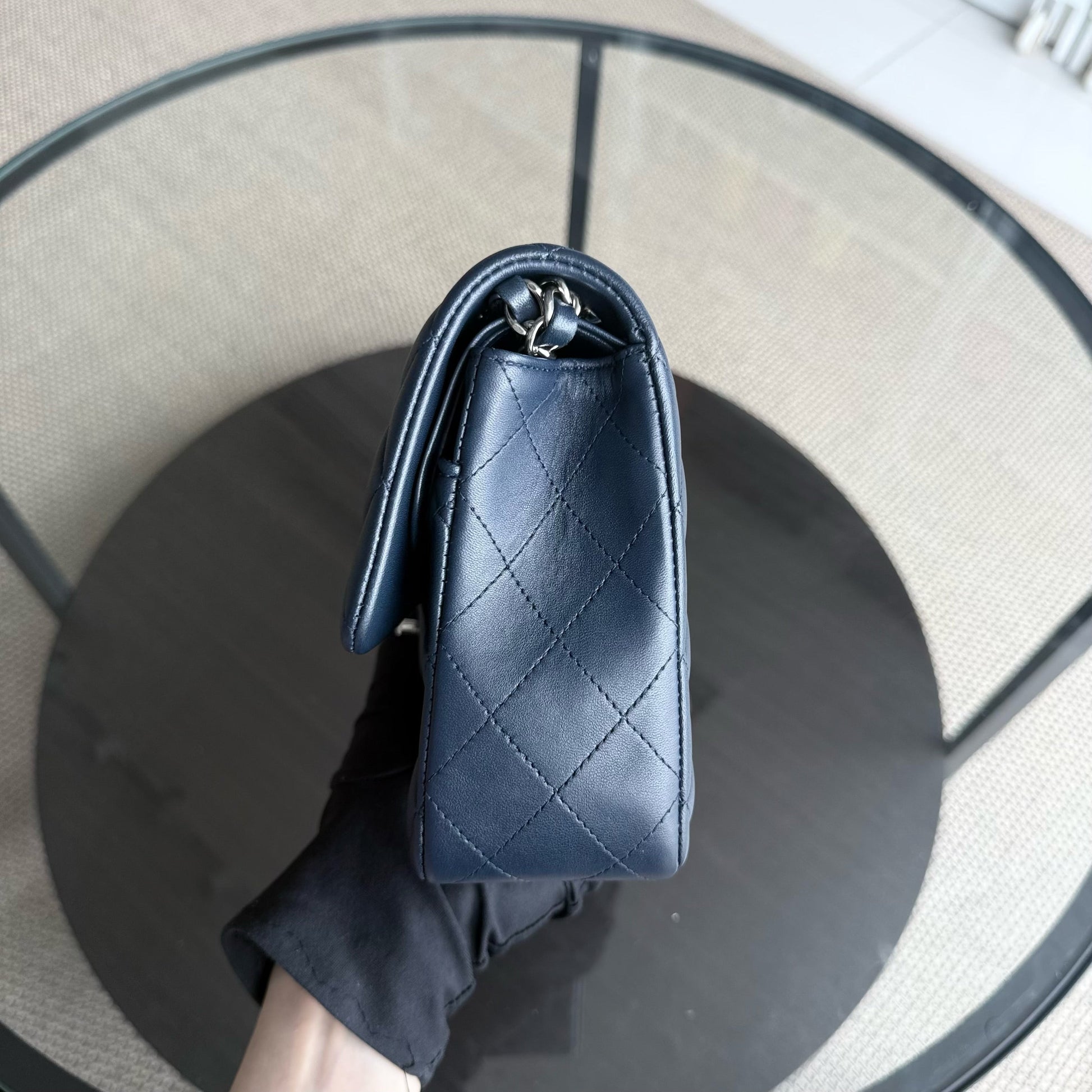 Chanel Classic Flap Medium - 25CM Quilted Lambskin Midnight Blue Silver Hardware Series 22