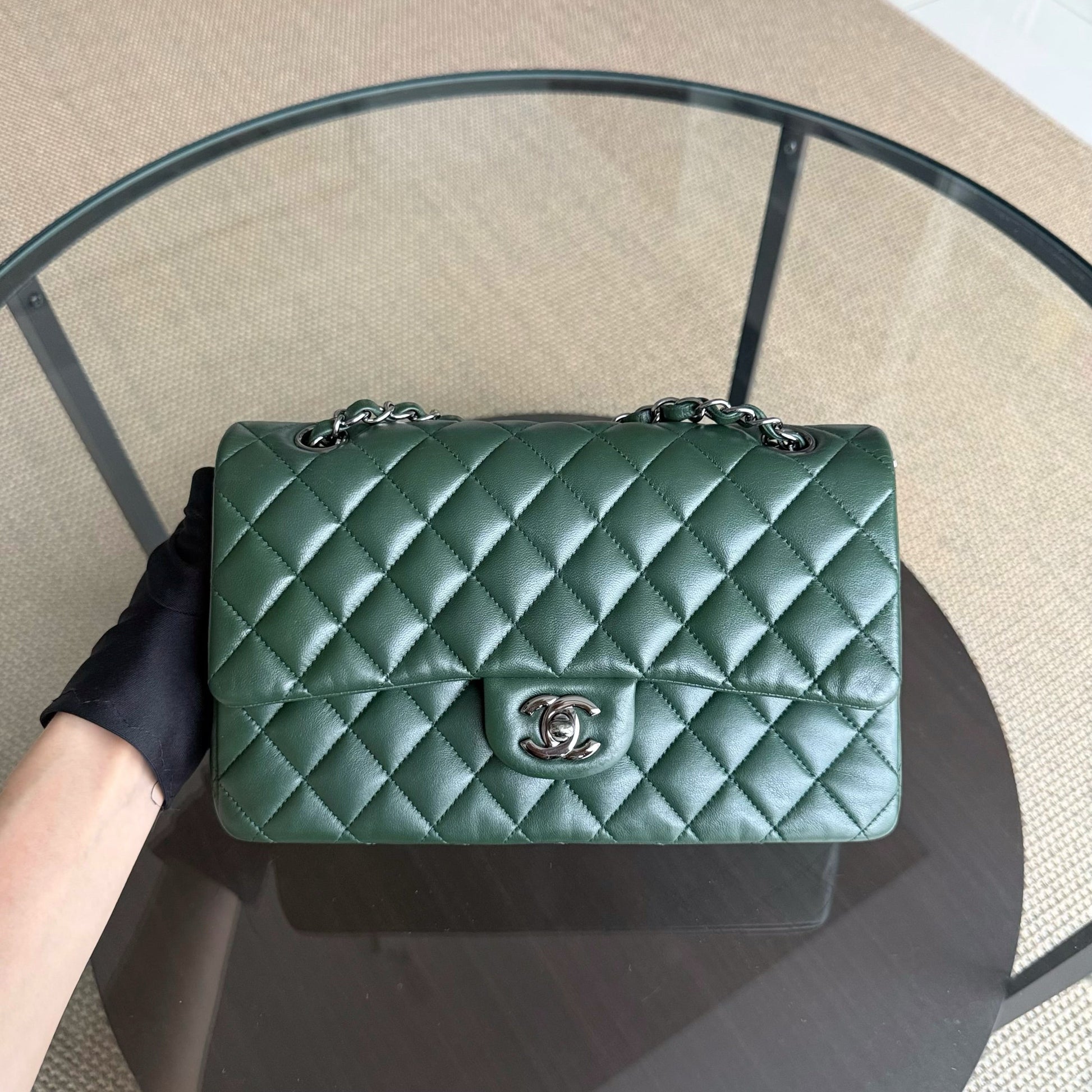 Chanel Classic Flap Medium - 25CM Quilted Lambskin Dark Green Silver Hardware Series 23