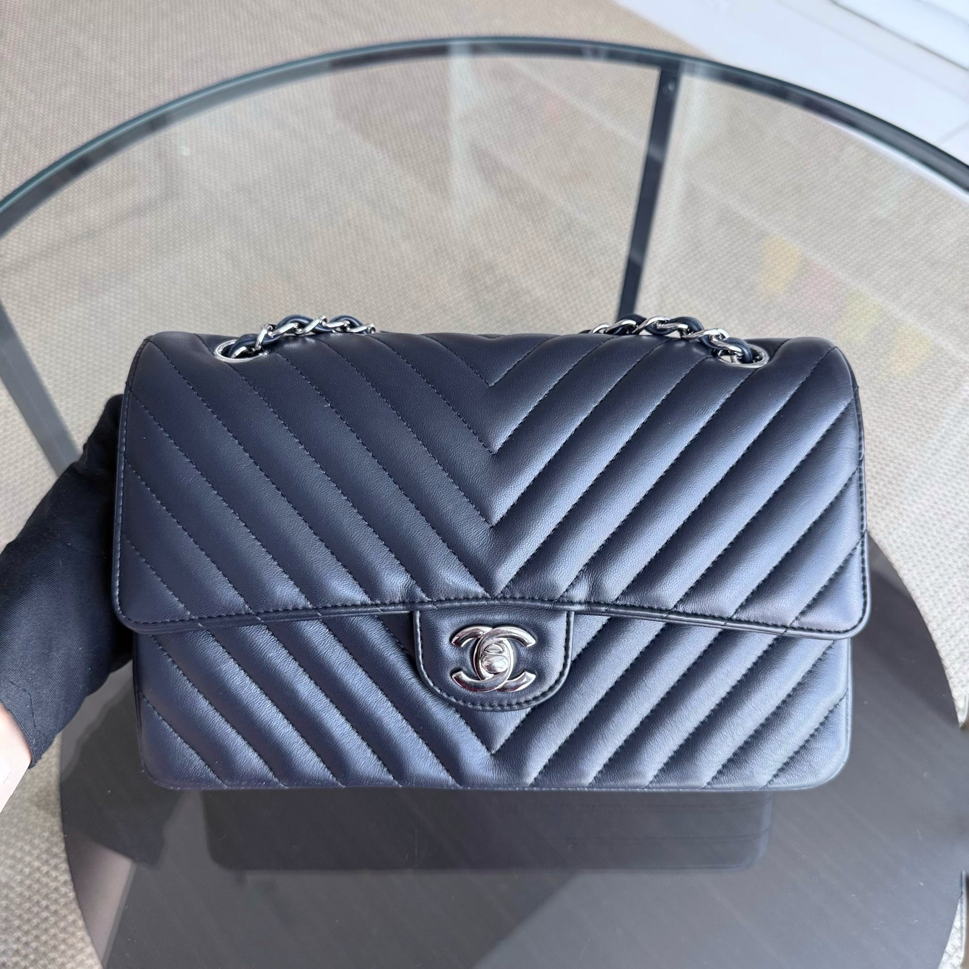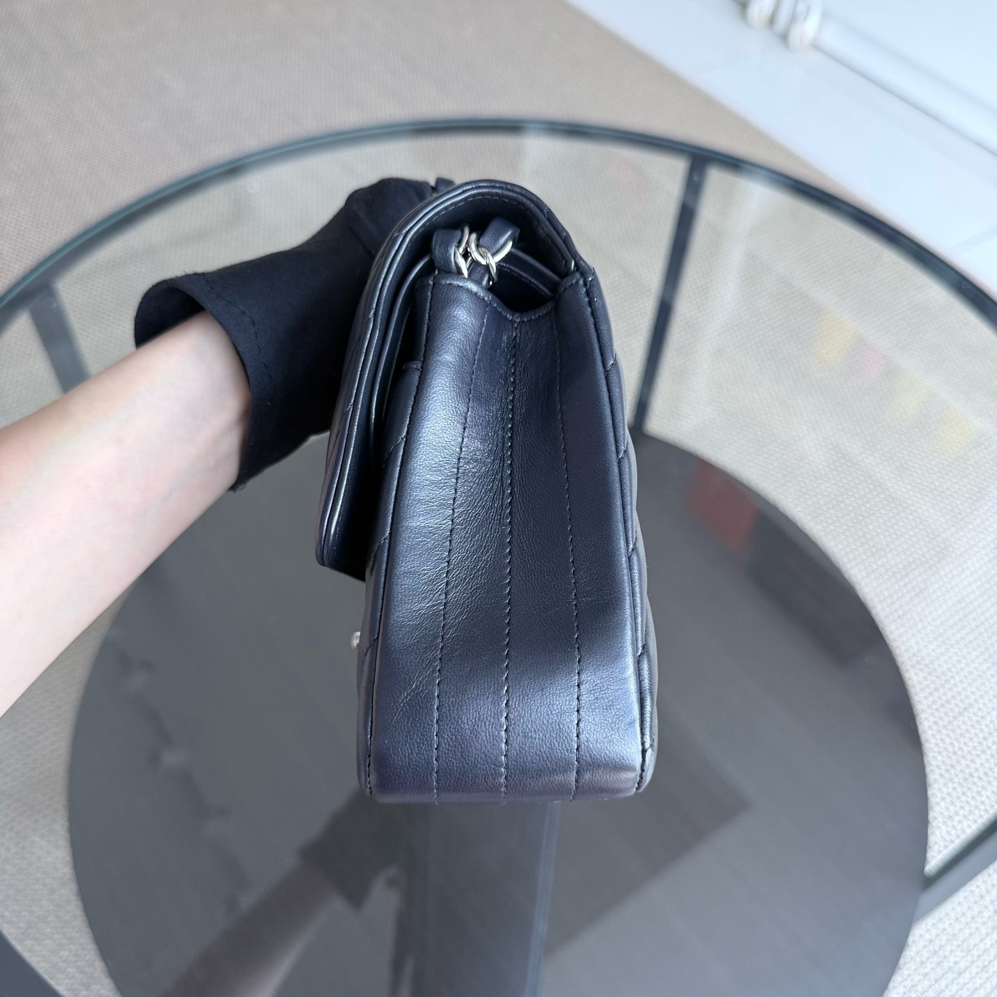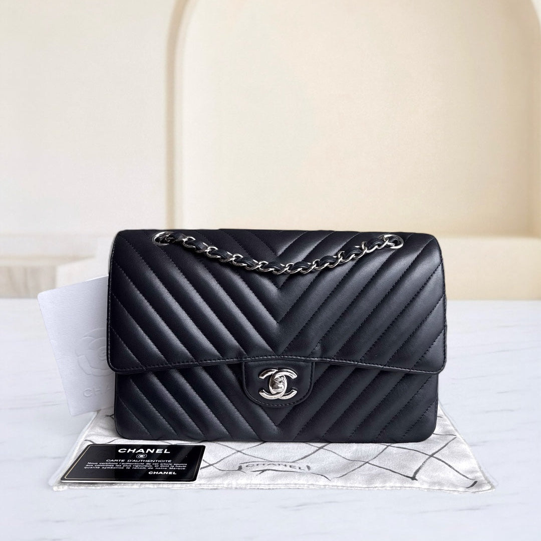 Chanel Classic Flap Medium - 25CM Chevron Lambskin Midnight Dark Blue Silver Hardware Series 25