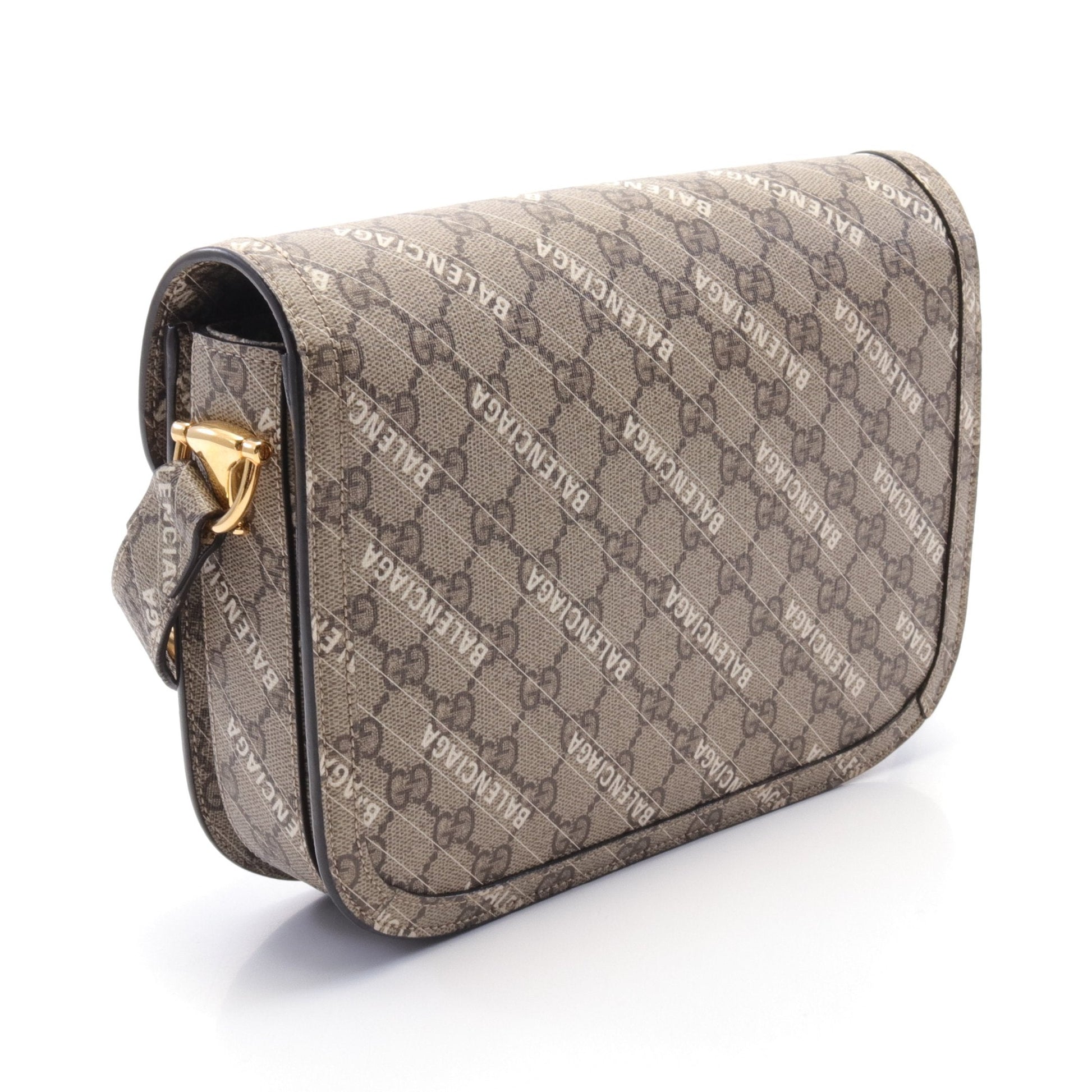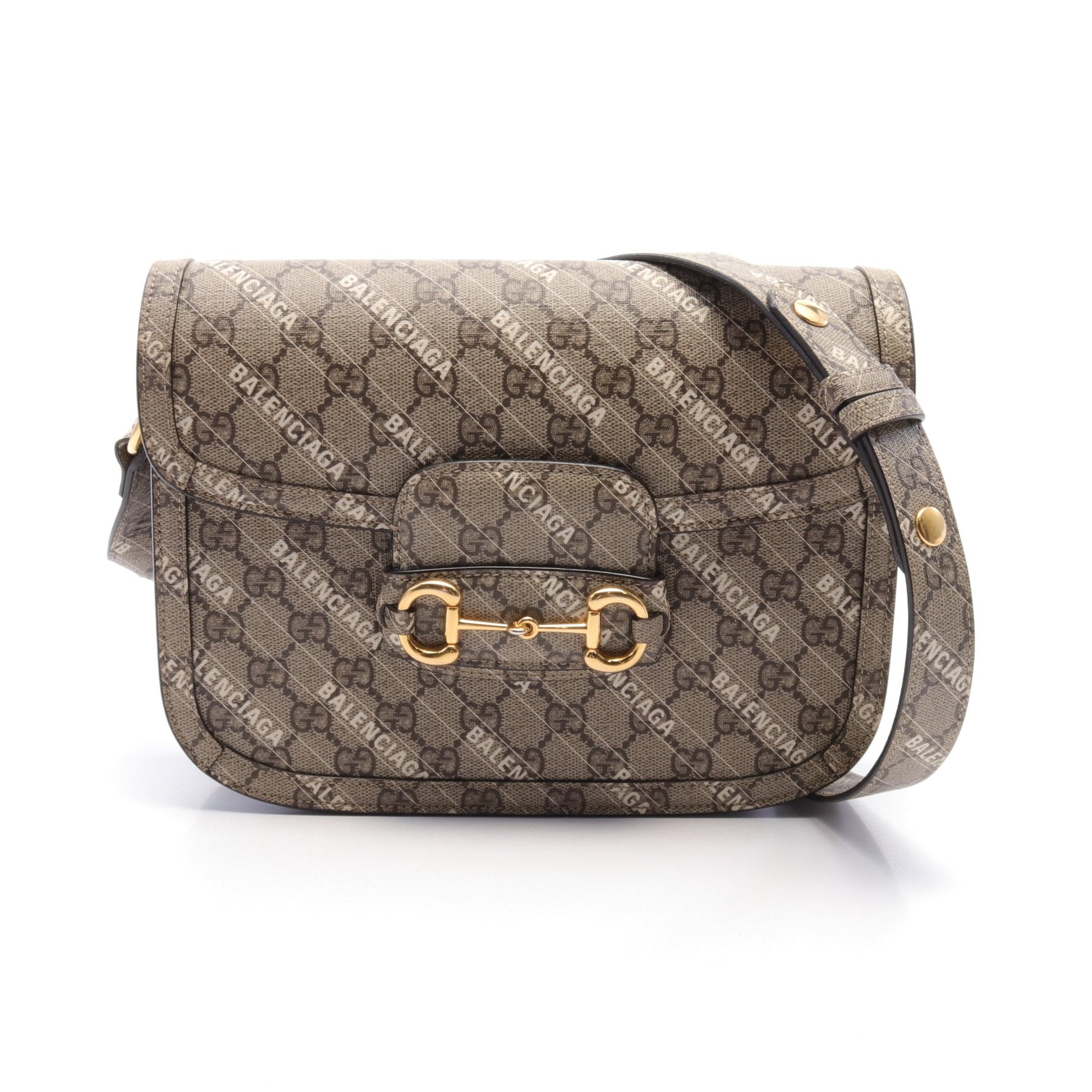 GUCCI GUCCI * Luxury Balenciaga Trending 2025 Horsebit 1955 Shoulder bag PVC Beige Dark brown White