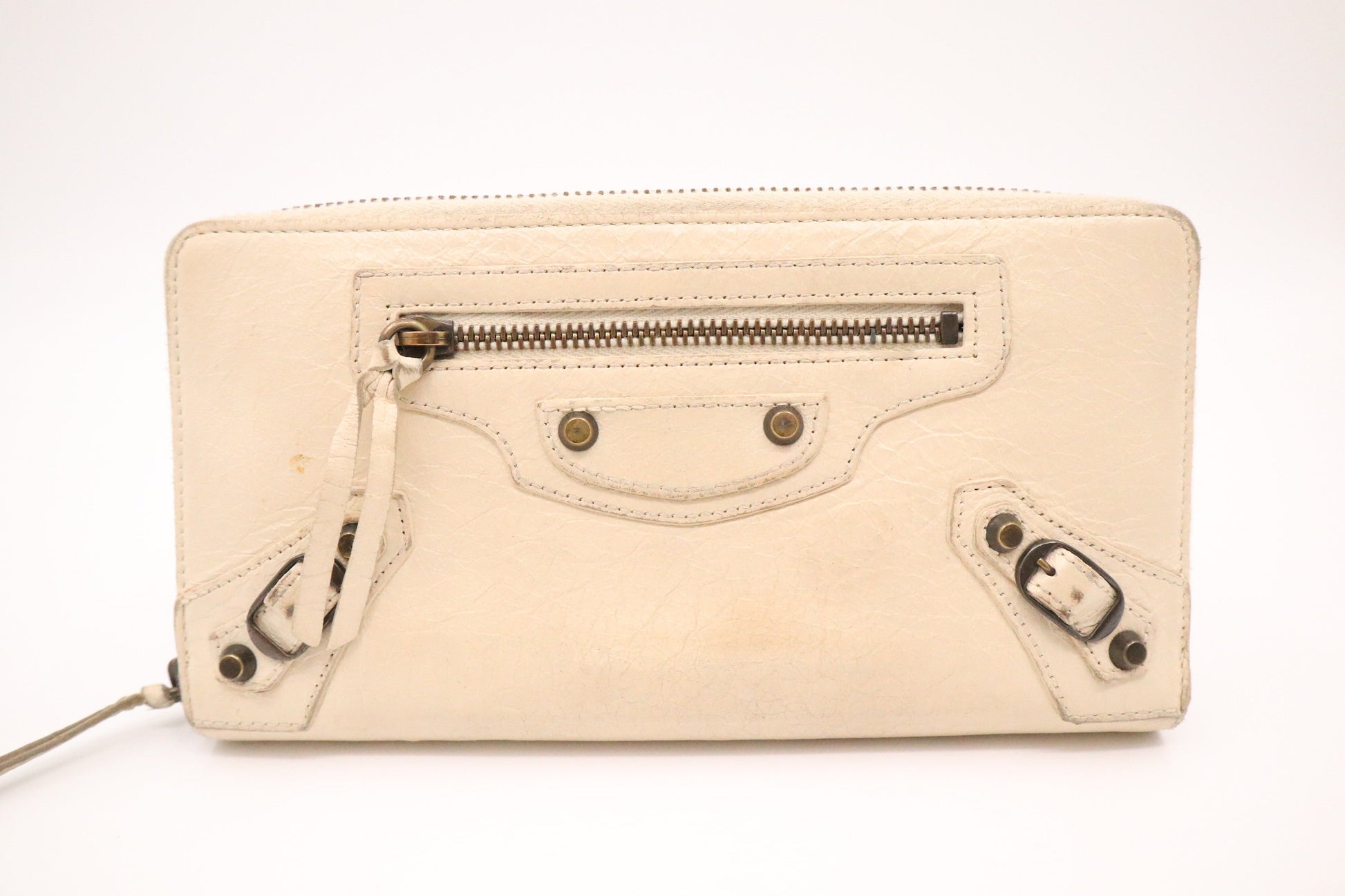 Balenciaga Le Cagole Zip Around Wallet in Beige Leather