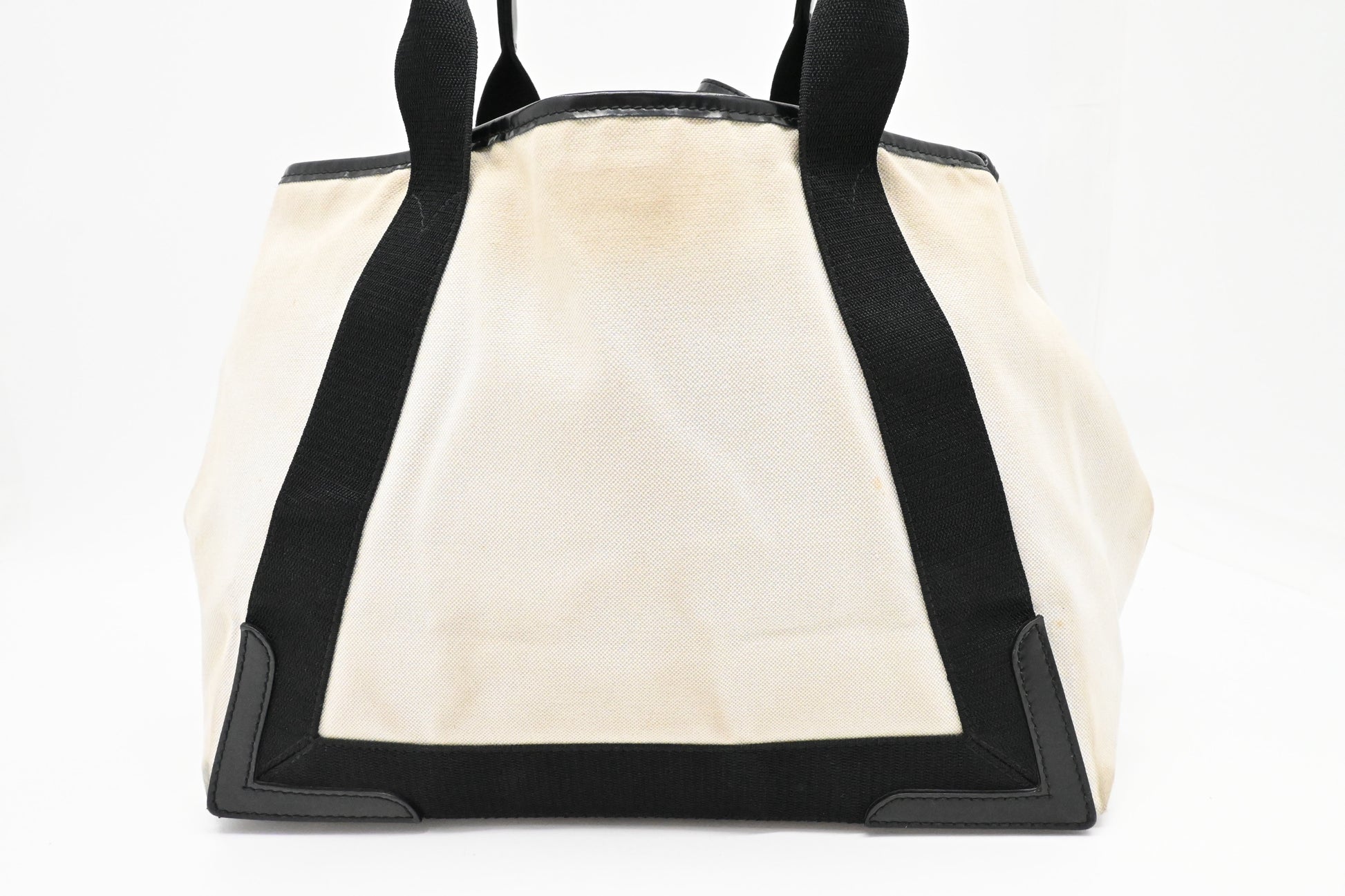 Balenciaga Large Navy Cabas Tote in Ecru Canvas