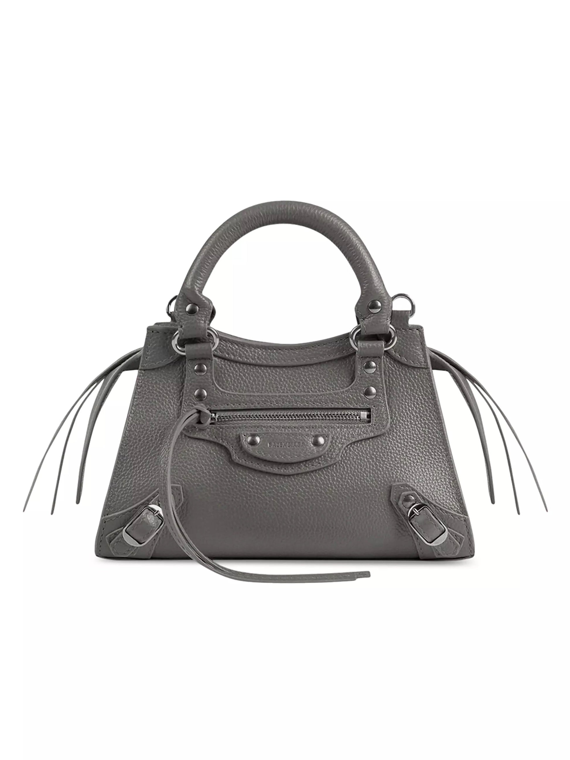 BALENCIAGA Neo Classic mini handbag in grained calfskin and aged-silver hardware.