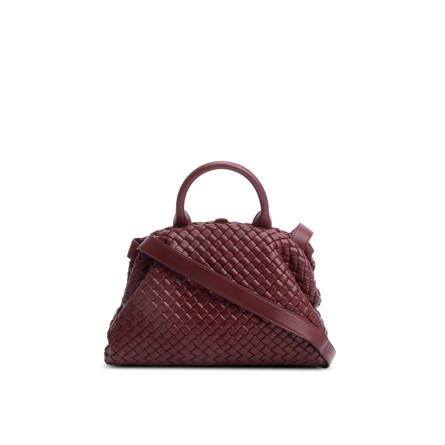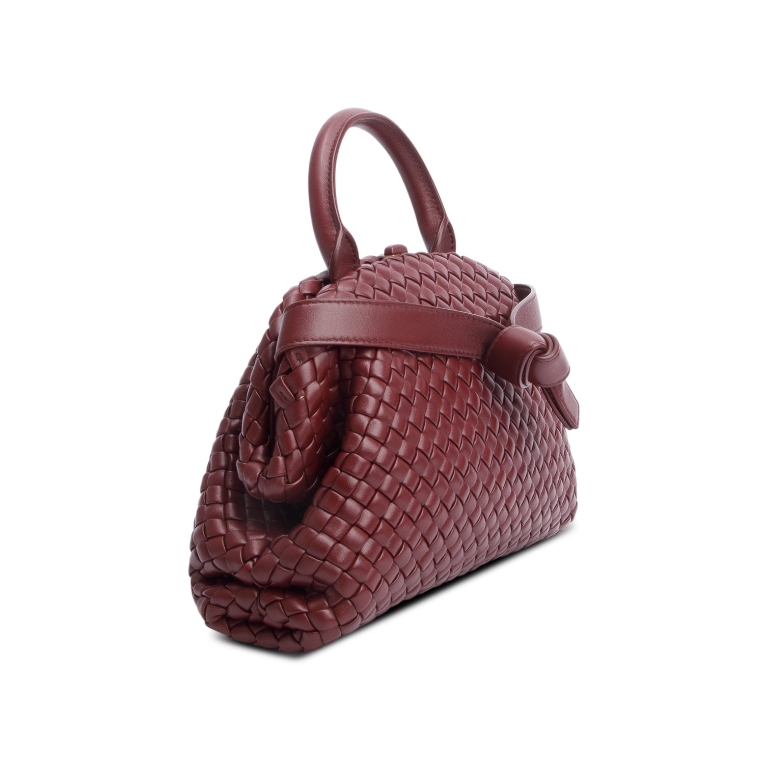 Bottega Veneta Burgundy Intrecciato Small Top Handle Bag