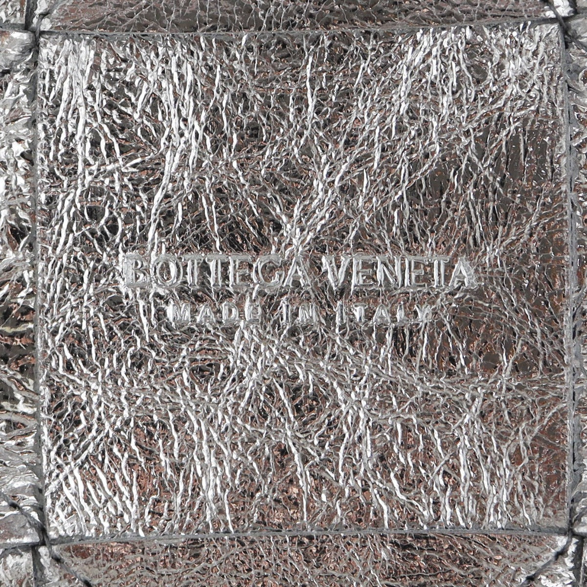 Features: Silver metallic intrecciato aged calfskin leather exterior; silver tone hardware; slim double knotted shoulder strap; open top to main compartment; tonal unlined interior.