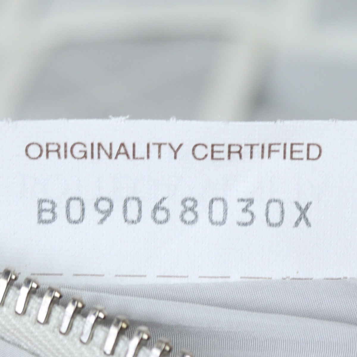 Features: White intrecciato hand woven nappa lambskin leather exterior; silver tone hardware; adjustable shoulder strap; top flap with concealed magnetic closure to main compartment; tonal leather unlined interior with 1 x detachable textile zipped pouch.