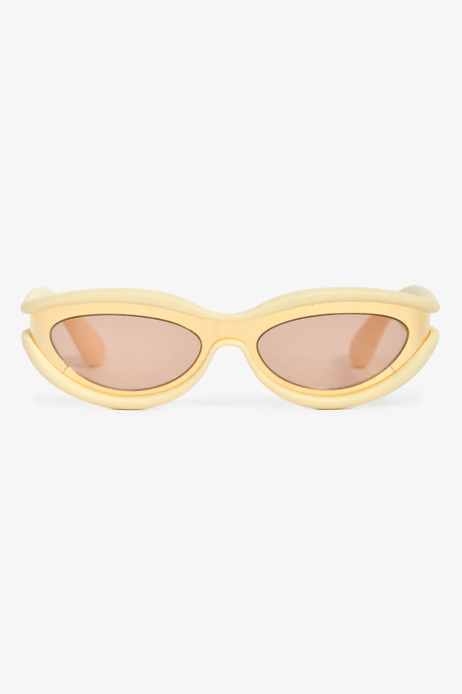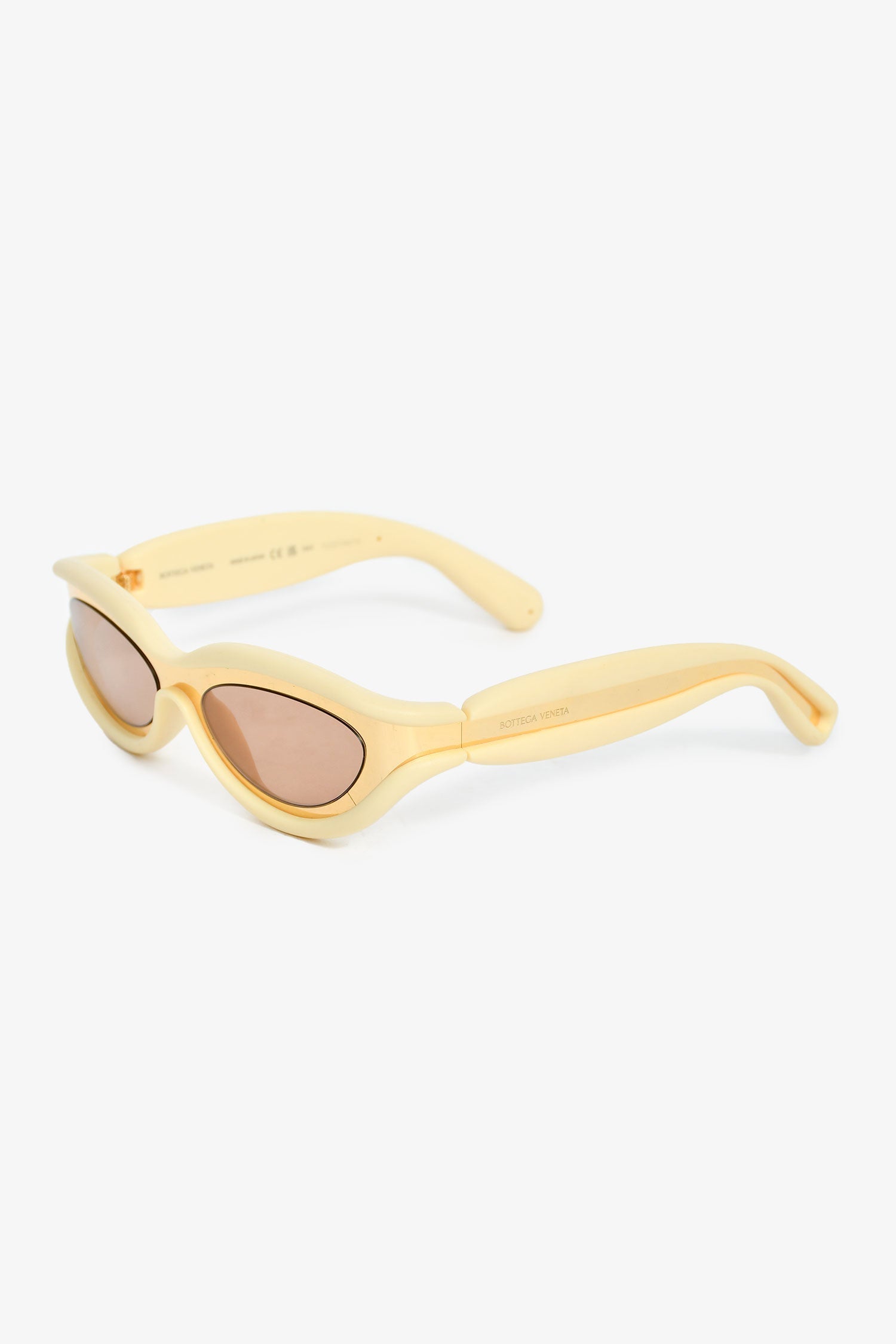 Bottega Veneta Gold Tone/Cream Rubber Oval Sunglasses. Built-in nose pads. Gold-tone hardware.