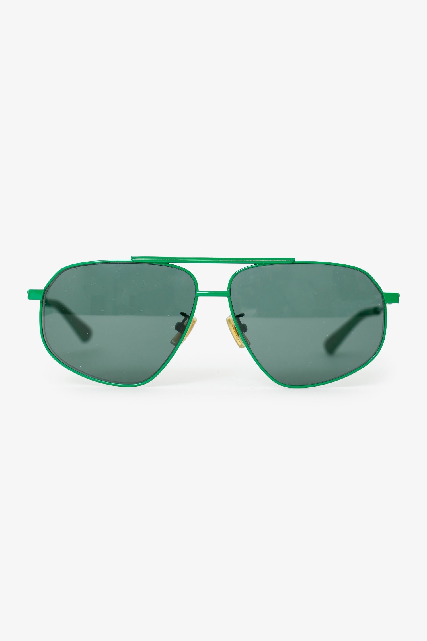 Bottega Veneta Green Metal Frame Aviator Tinted Sunglasses