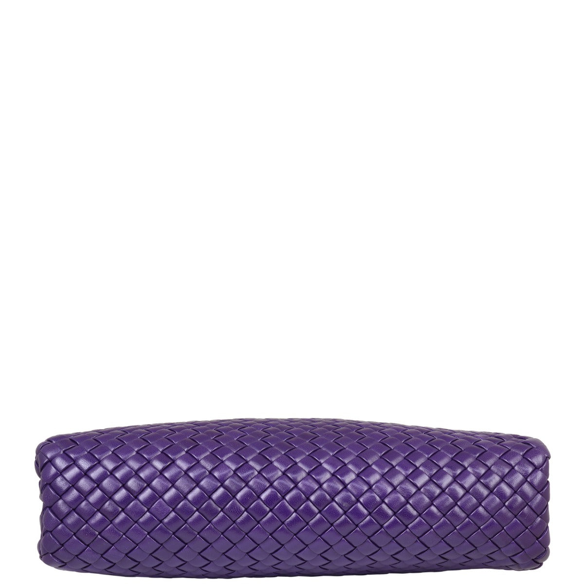 Features: Raisin purple intrecciato hand woven rigid lambskin leather exterior; gold tone hardware; single rolled top handle; detachable knotted flat leather shoulder strap; frame top with push button closure to interior; unlined woven leather interior.