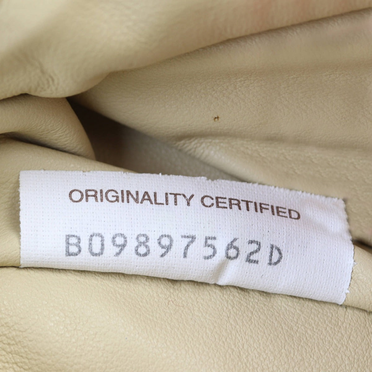 Features: Ice cream (beige) lambskin intrecciato leather exterior; single top handle with a knotted base on one side; gold tone hardware; top zip opening to main compartment; tonal leather lined interior.