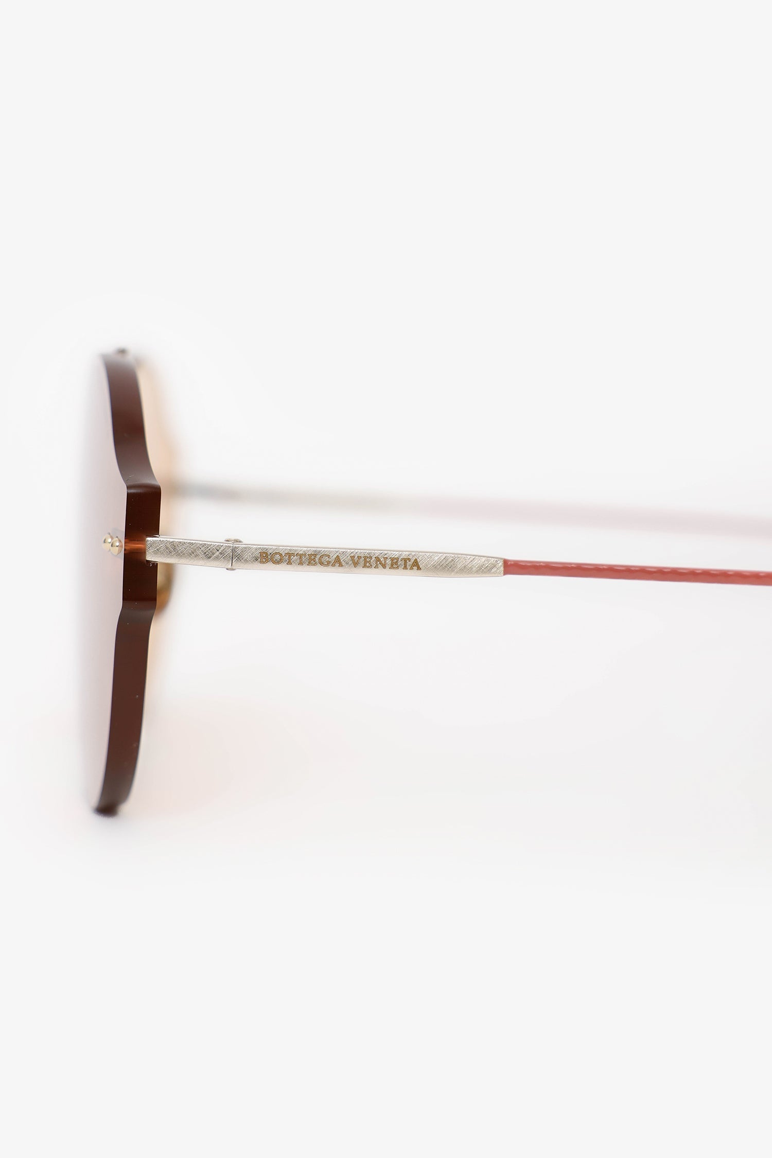 Bottega Veneta Pink Frame Round Sunglasses. Adjustable nose pads. Gold-tone hardware.