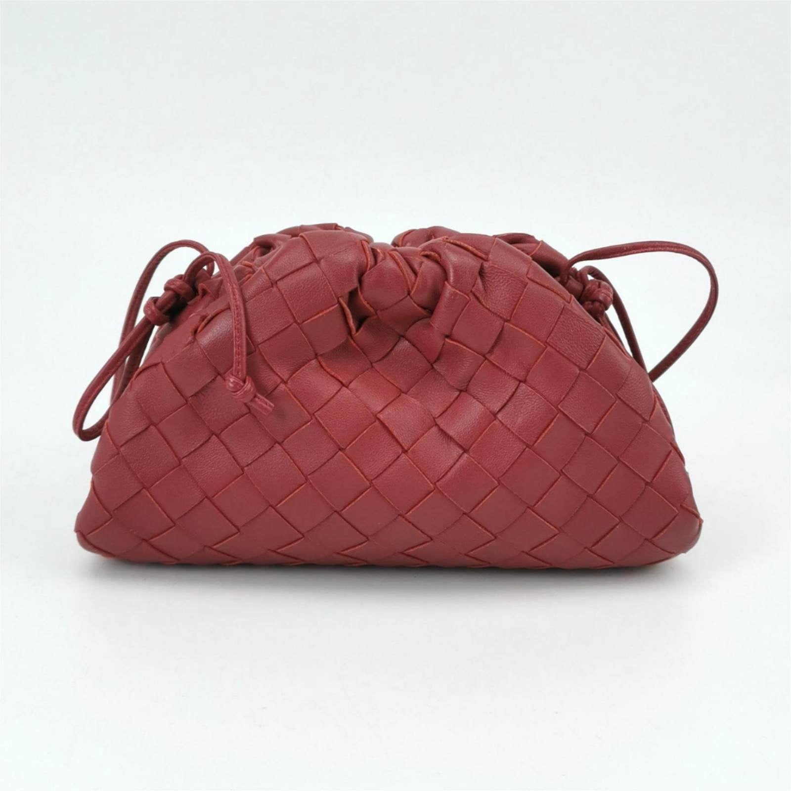 Bottega Veneta Pouch Mini Intrecciato Burgundy Lambskin Leather Crossbody Bag