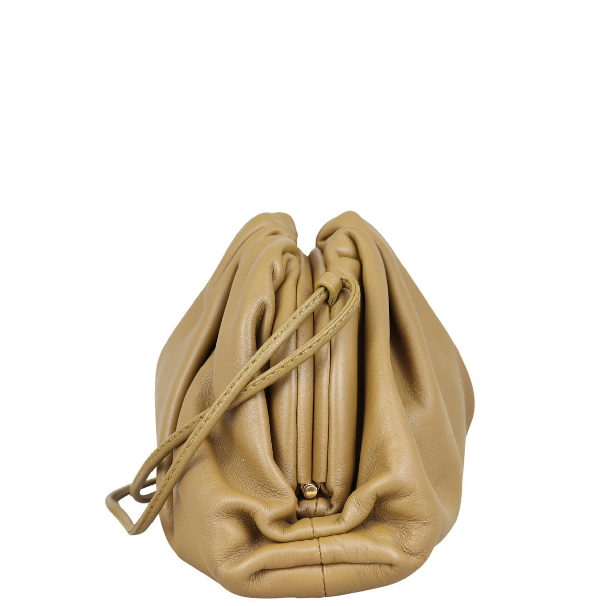 This stunning Bottega Veneta The Mini Pouch is a petite package of fine luxury. Crafted from soft nappa calfskin leather in a neutral camel brown, this pouch works for both day and night. With a fine, long strap that can be worn over the shoulder, this heirloom piece is one that you’ll never want to put down.