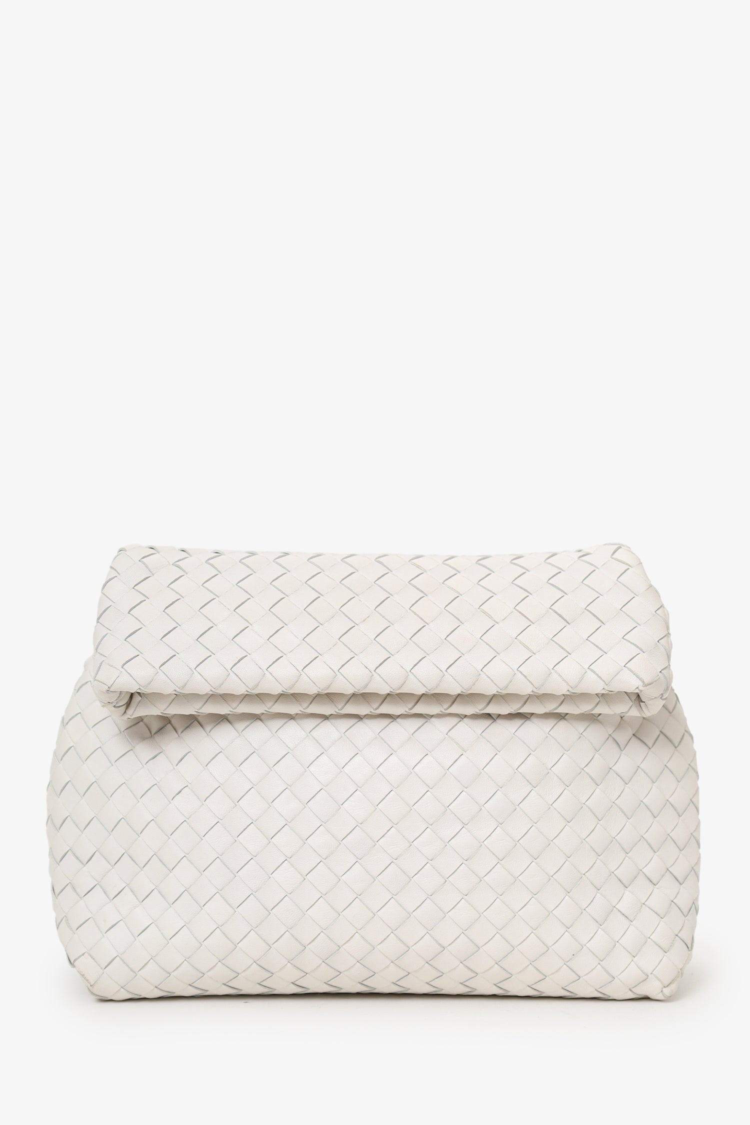 Bottega Veneta White Intrecciato Leather Fold Bag
