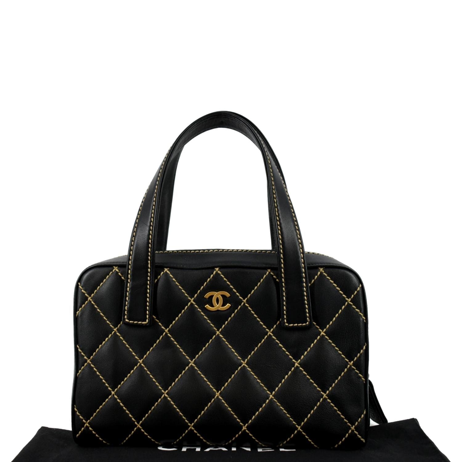 This CHANEL CC Wild Stitch Calfskin Leather Tote Bag Black features a compact, well-balanced silhouette with refined detailing, offering a polished and contemporary presence.