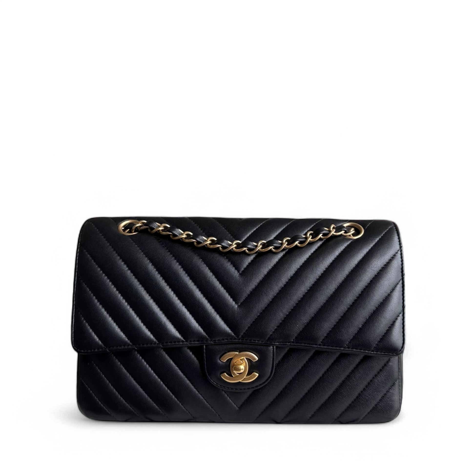 Chanel Classic Flap Medium - 25CM Chevron Lambskin Black Gold Hardware Series 27