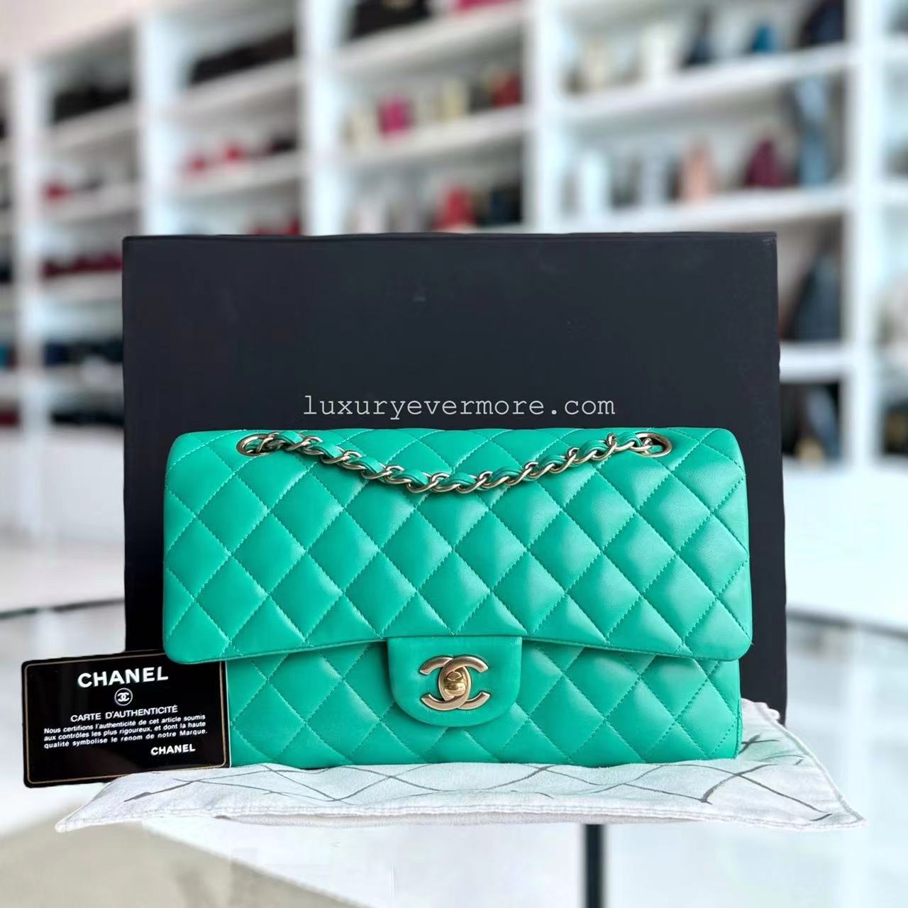Chanel Classic Flap Medium - 25CM Double Flap Green Quilted Lambskin Gold Hardware Series 18