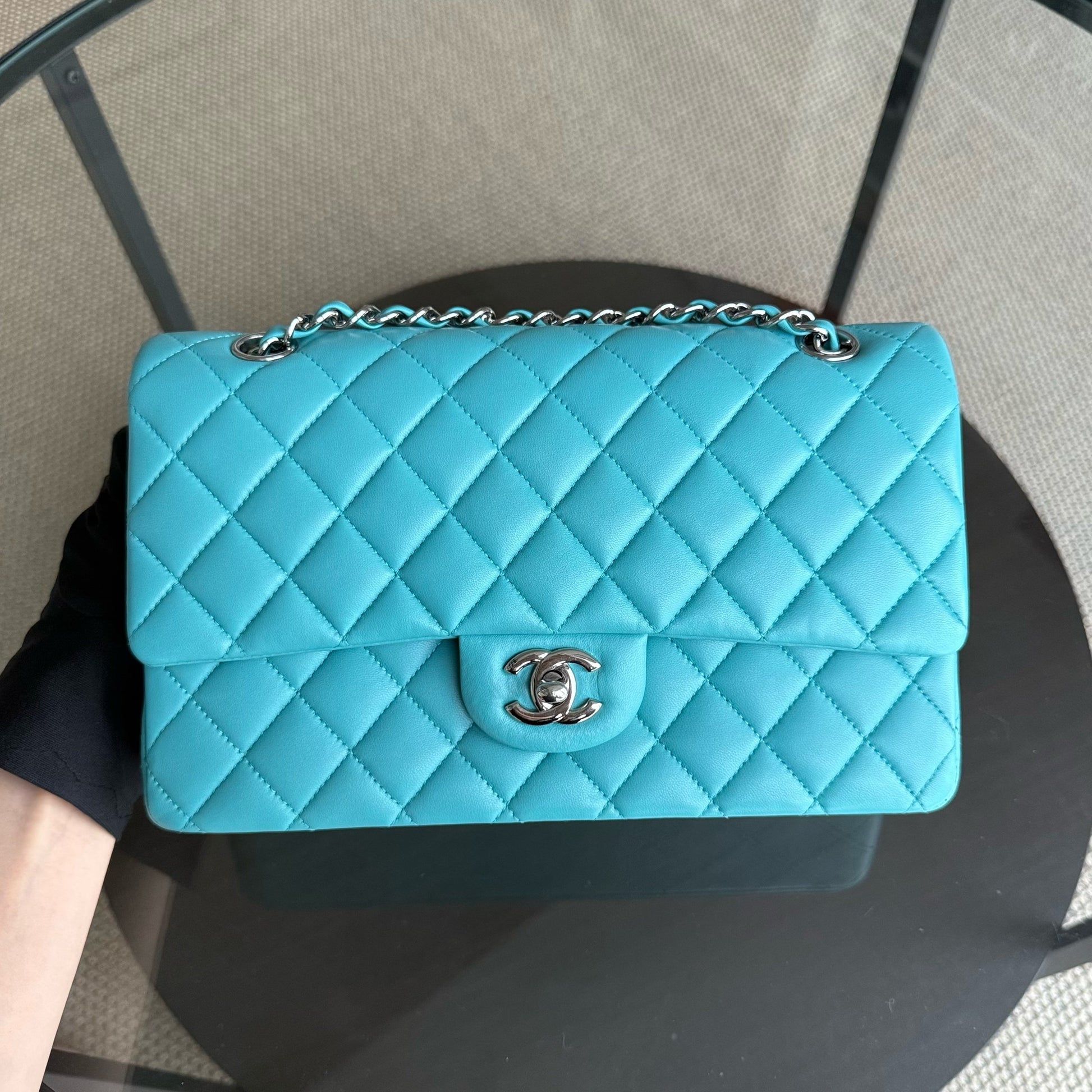 Chanel Classic Flap Medium - 25CM Quilted Lambskin Blue Silver Hardware Series 19