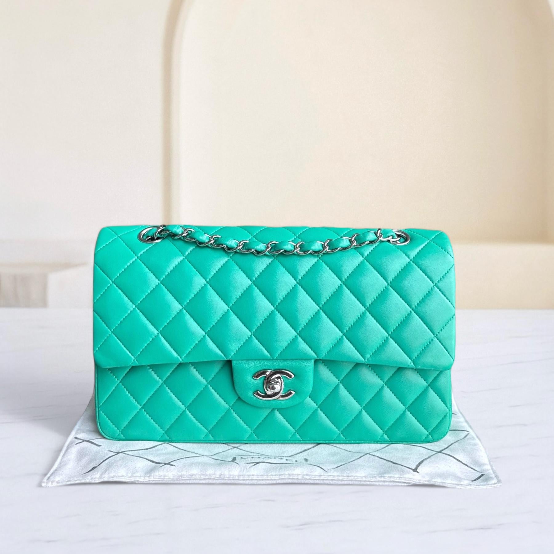 Chanel Classic Flap Medium - 25CM Quilted Lambskin Light Green Silver Hardware Series 16