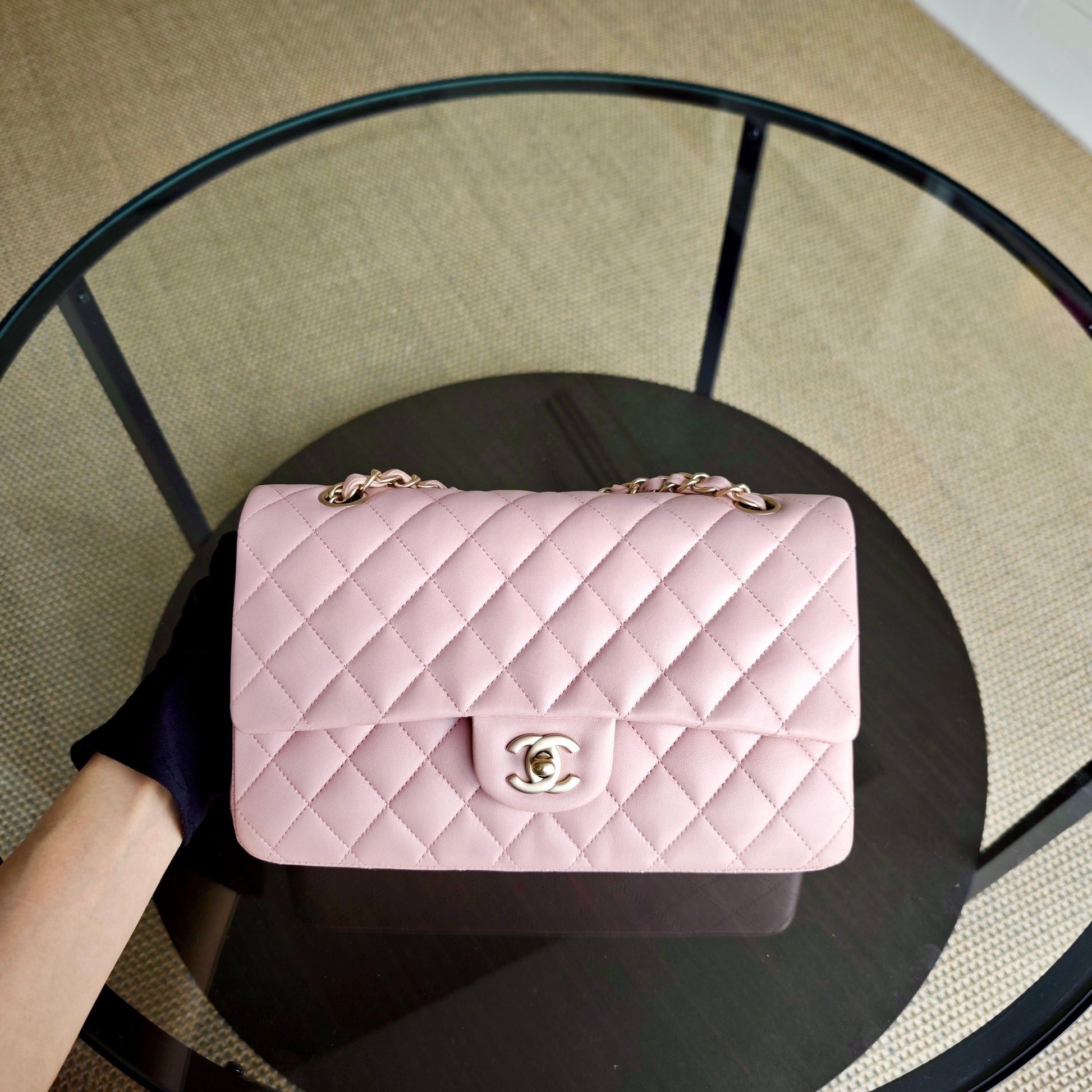 Chanel Classic Flap Medium - 25CM Quilted Lambskin Light Sakura Pink Gold Hardware