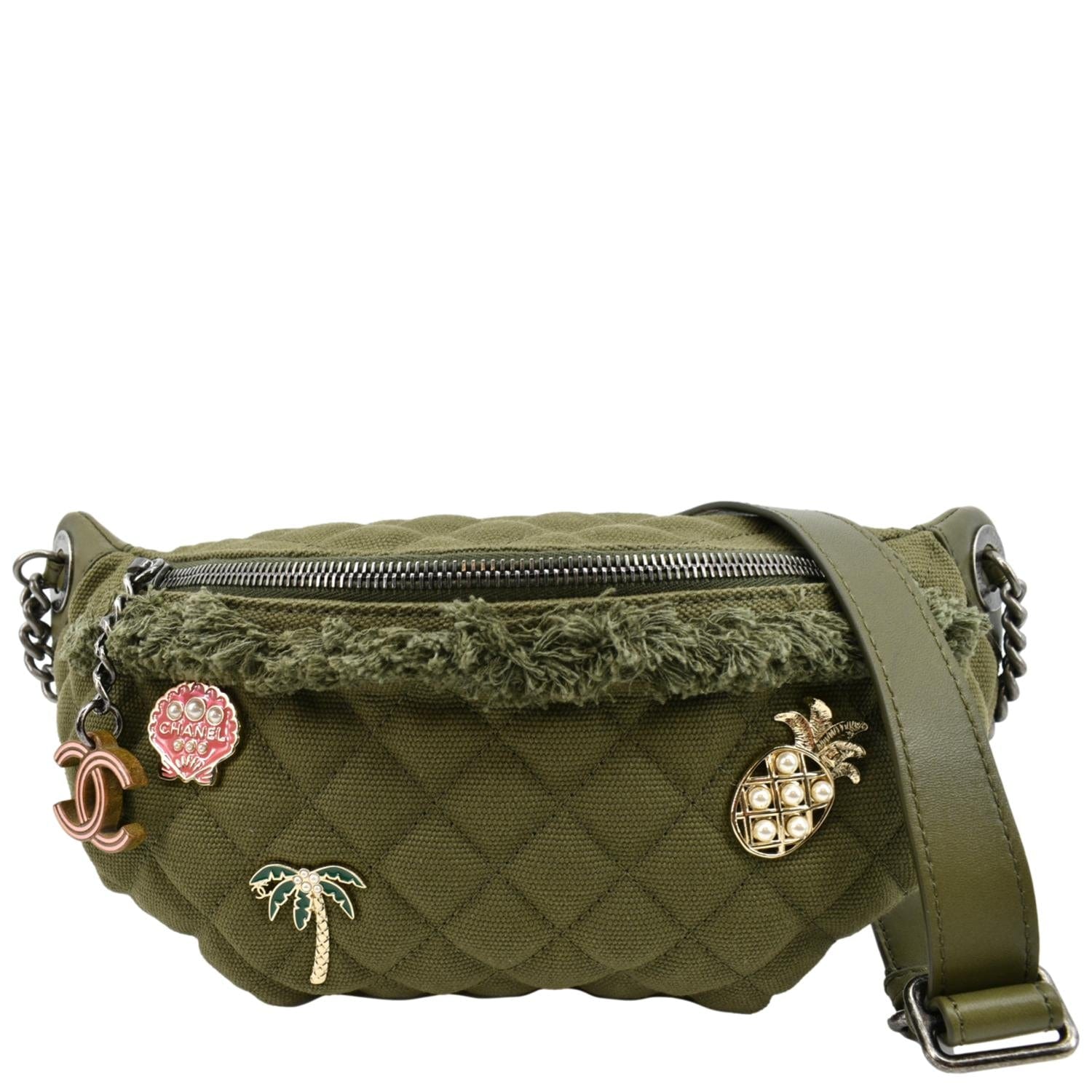 CHANEL Coco Cuba Charms Canvas Lambskin Leather Waist Bag Khaki