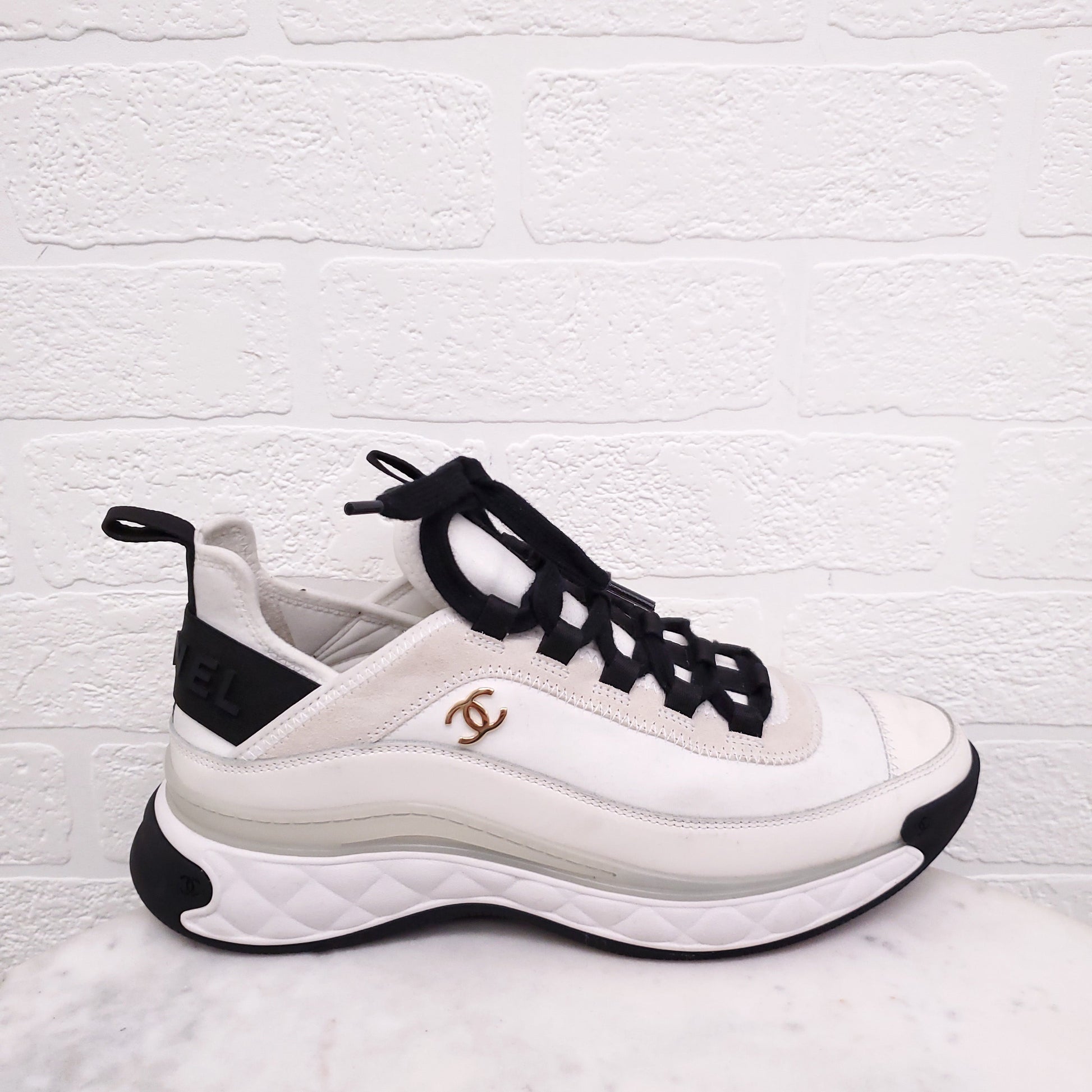 CHANEL CREAM AND BLACK SNEAKERS - SIZE 39.5