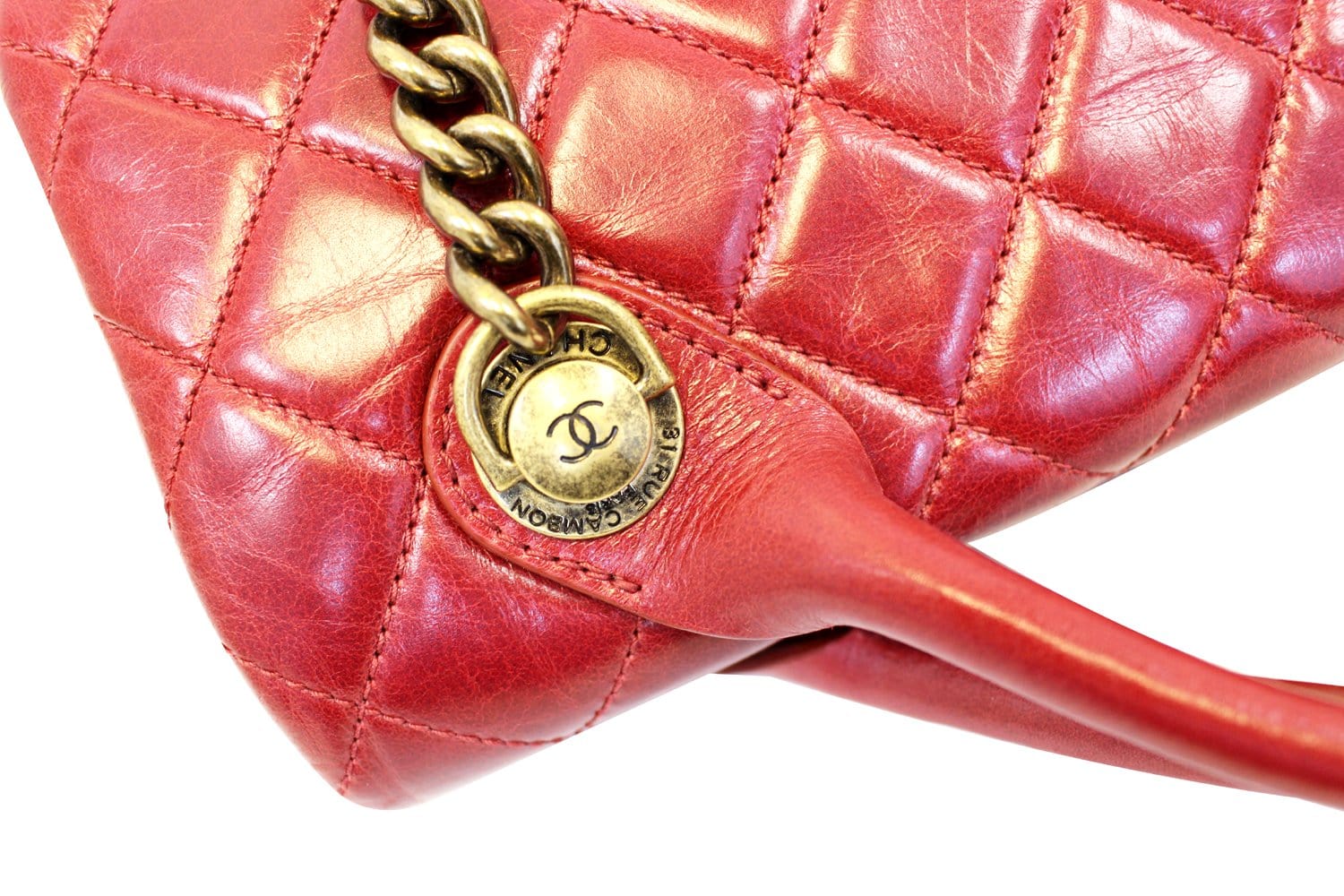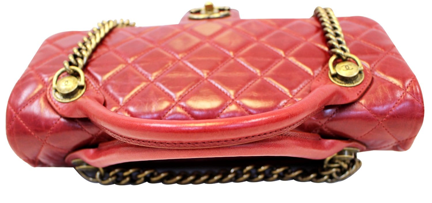 CHANEL Red Quilted Glazed Leather Large Castle Rock Top Handle Bag