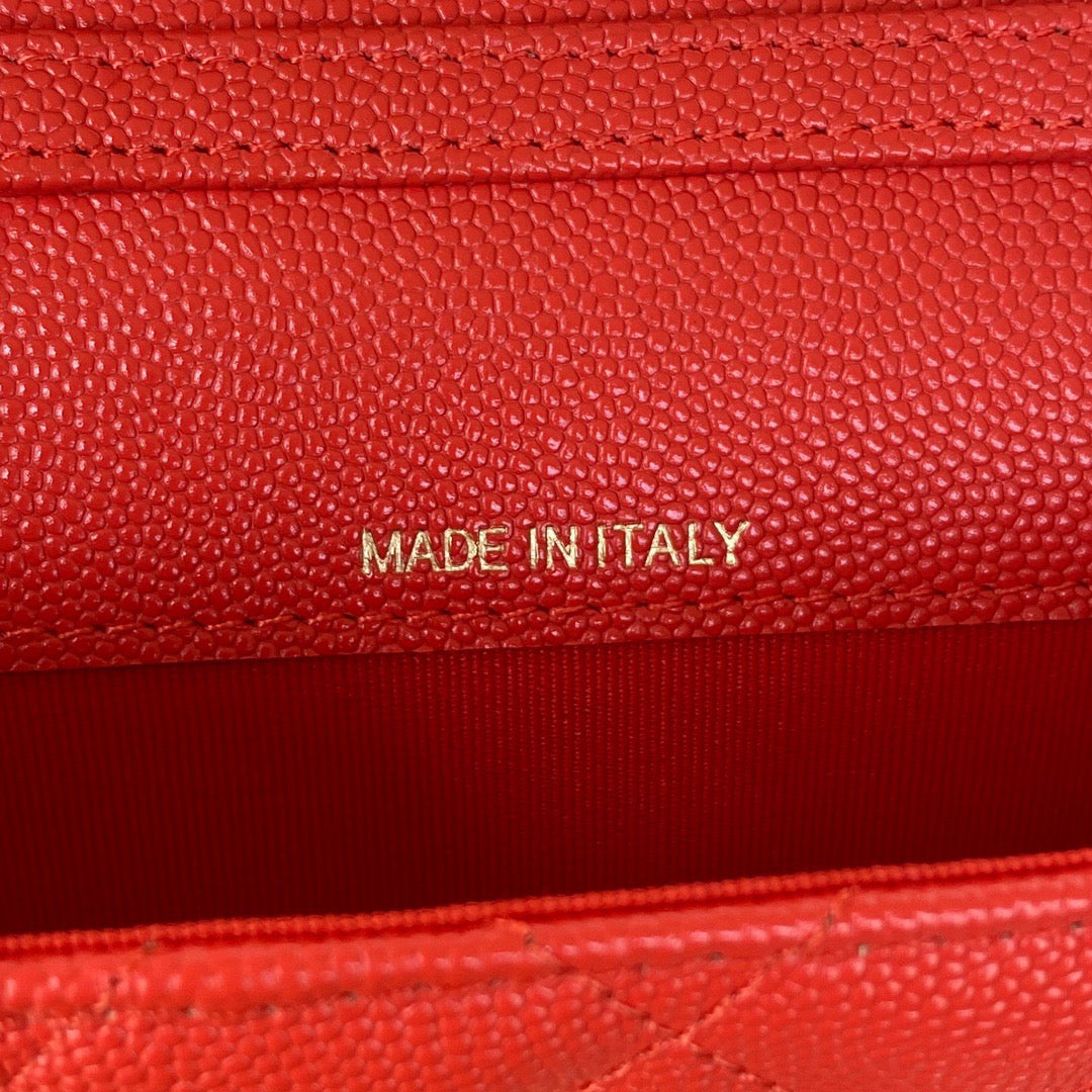 CHL Clutch With Chain Gold Hardware Grained Shinny Red For Women Handbags, Shoulder Bags 4.7in/12cm AP2857