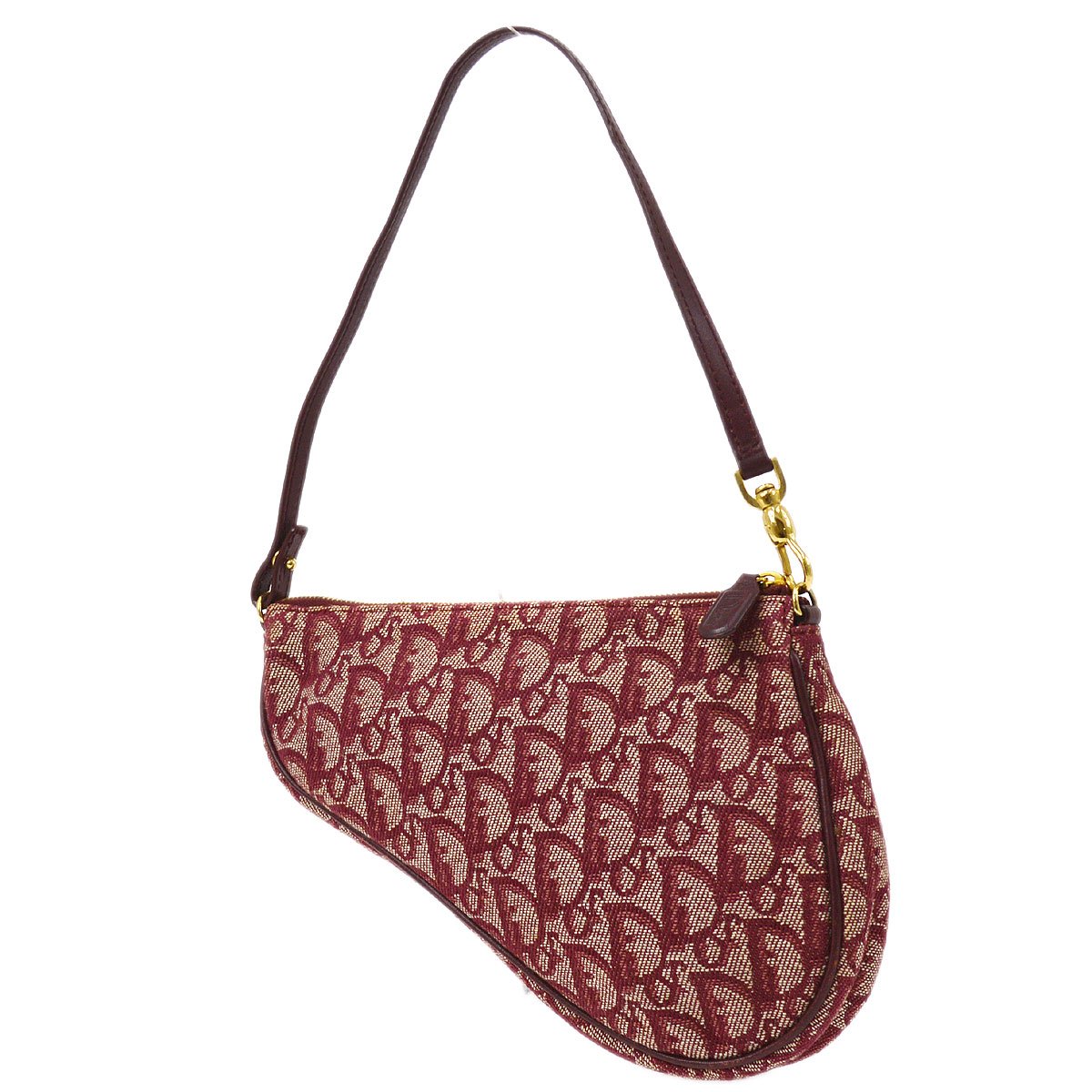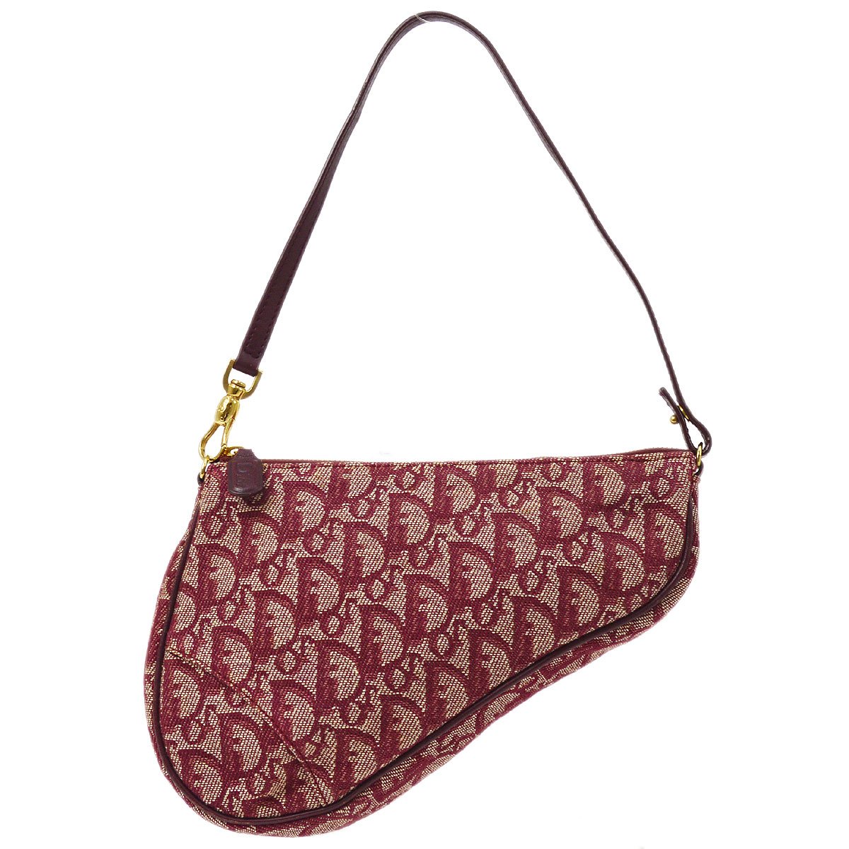 Christian Dior Trotter Pattern Saddle Hand Bag Bordeaux