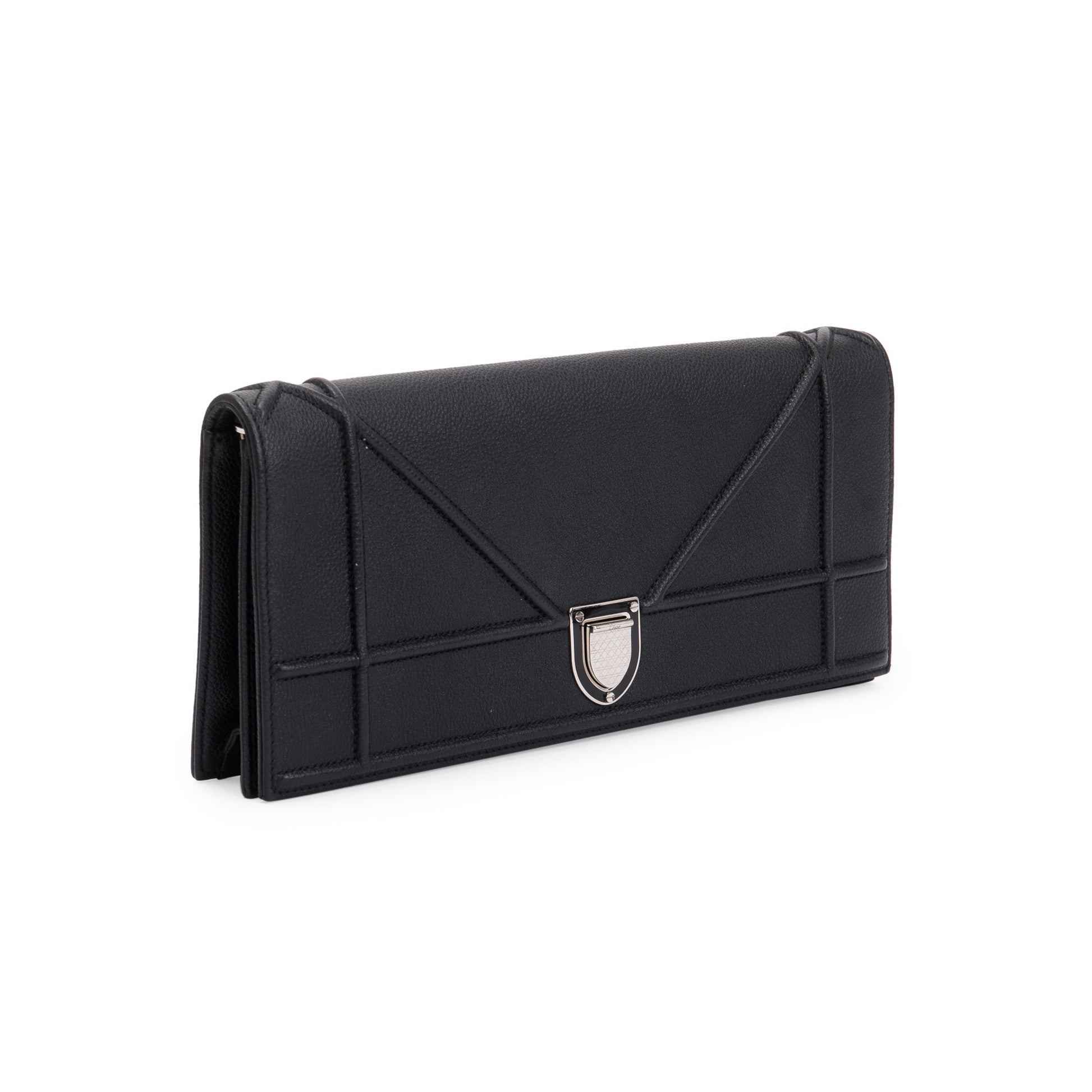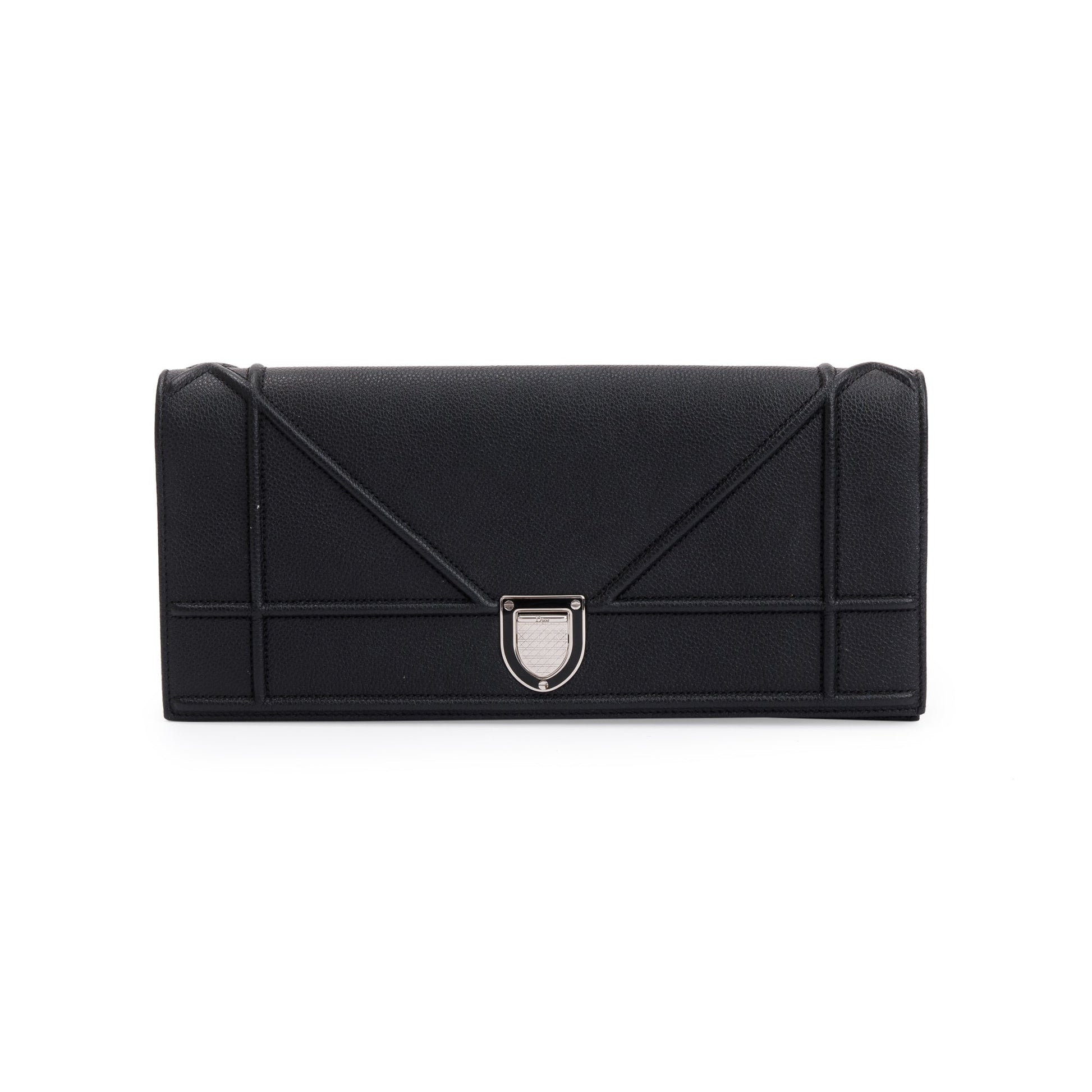 Christian Dior Black Calfskin Leather Diorama Chain Clutch