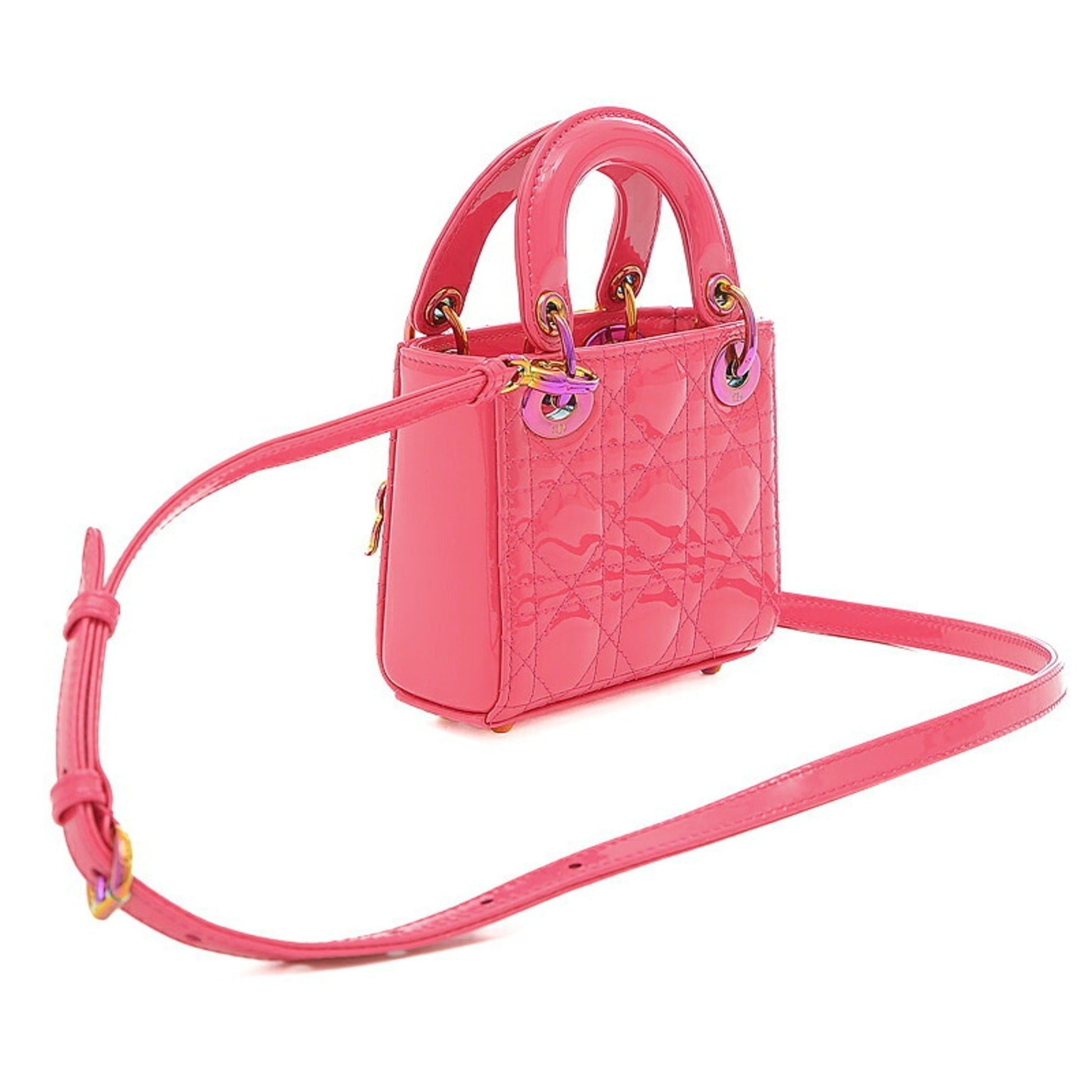 Christian Dior Dior Lady Micro 2WAY Shoulder Bag Pouch Patent Pink
