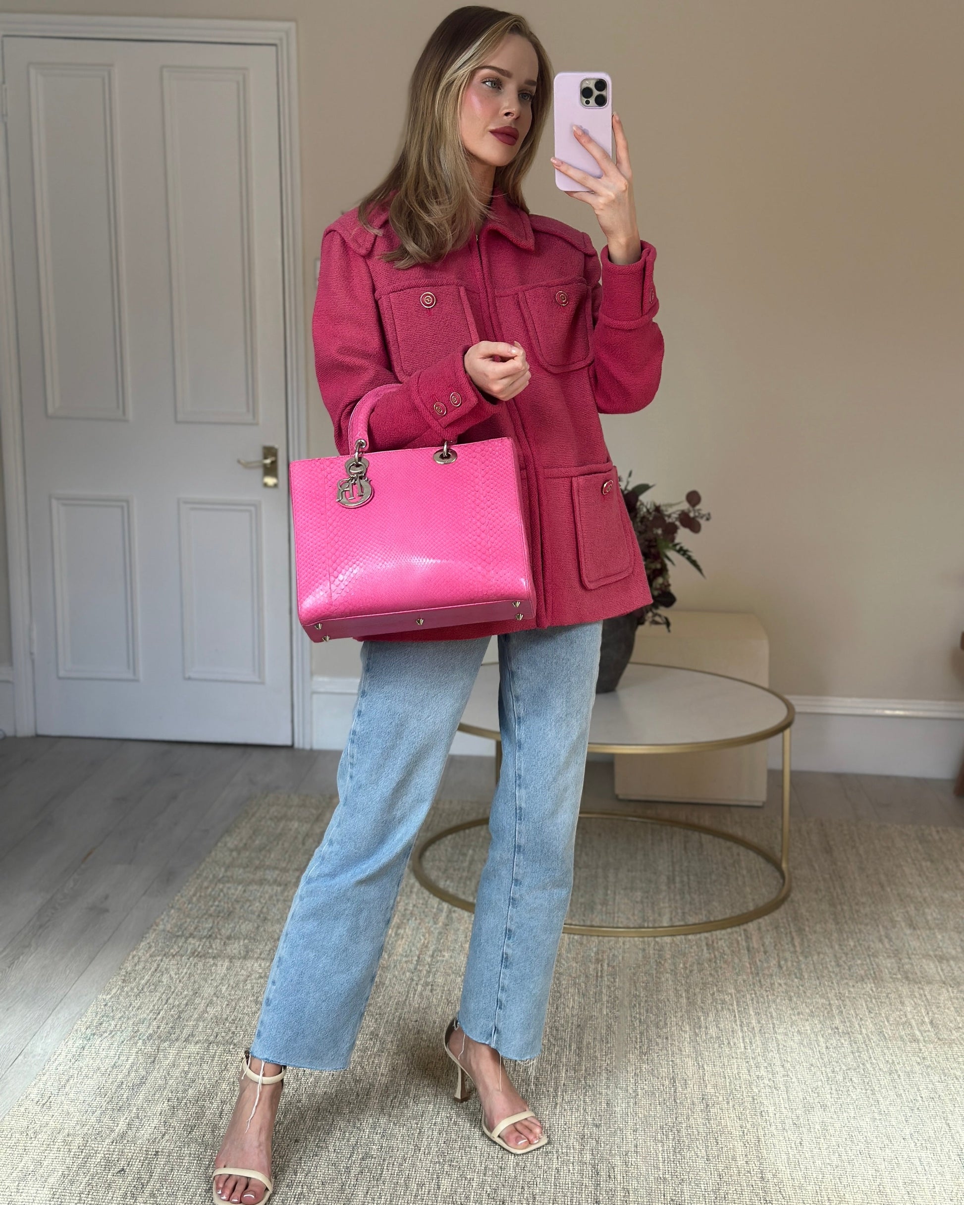 Christian Dior Large Pink Python Lady Dior Bag with Silver Hardware RRP £5600