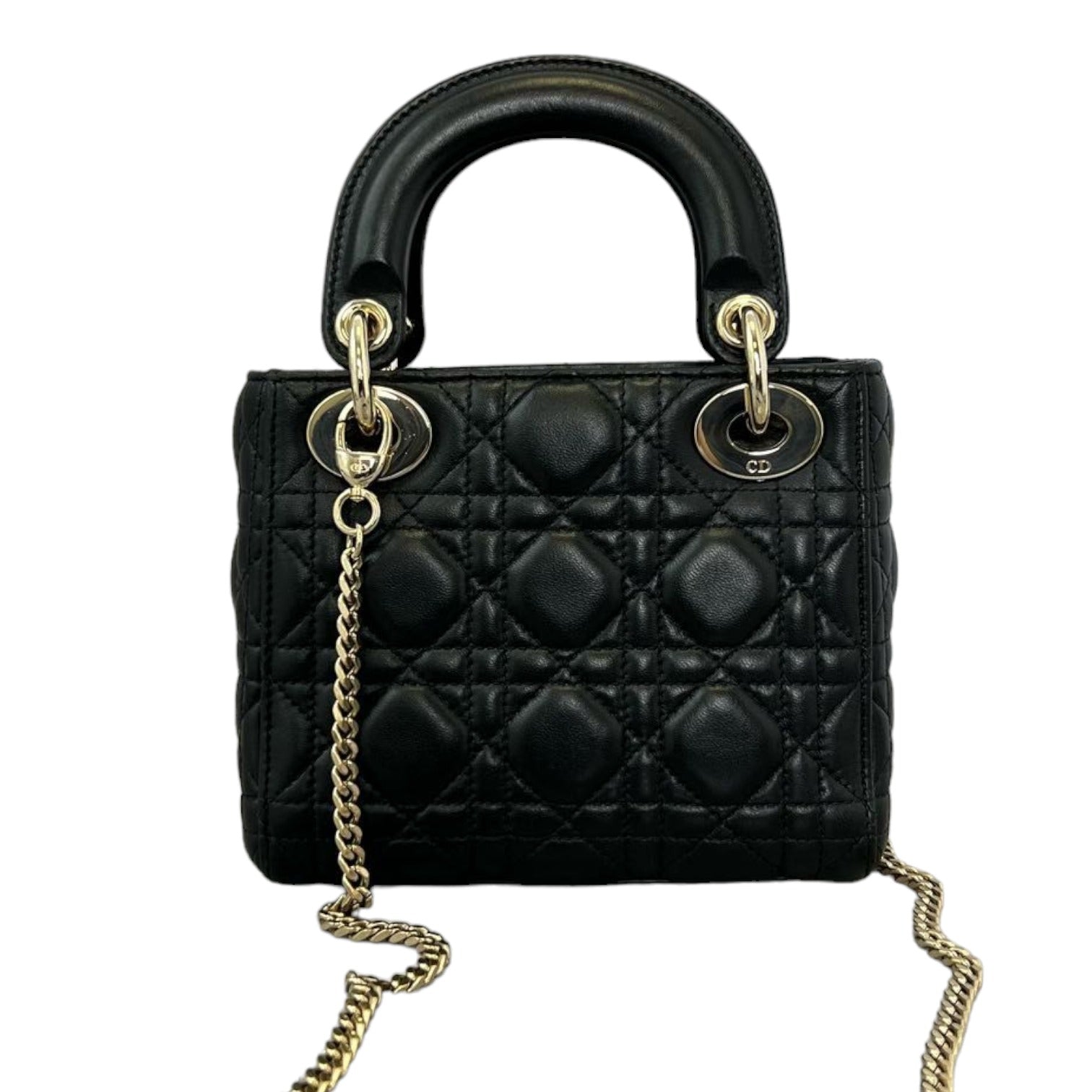 Mini Lady Dior Gold Strap Lambskin Cannage Black GHW