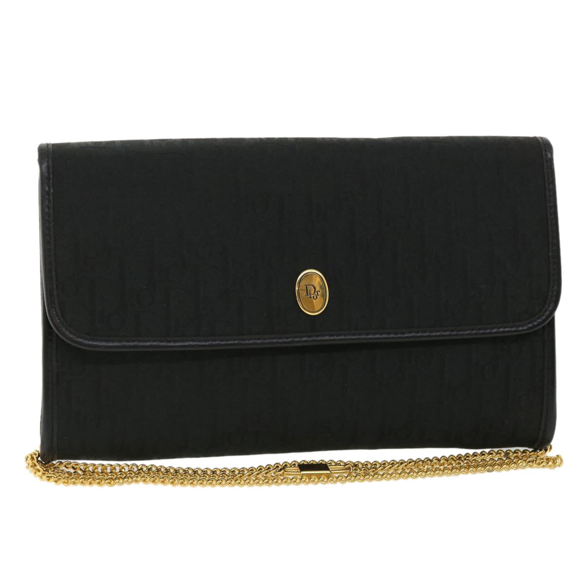 CHRISTIAN DIOR Trotter Canvas Chain Shoulder Bag Black am3863