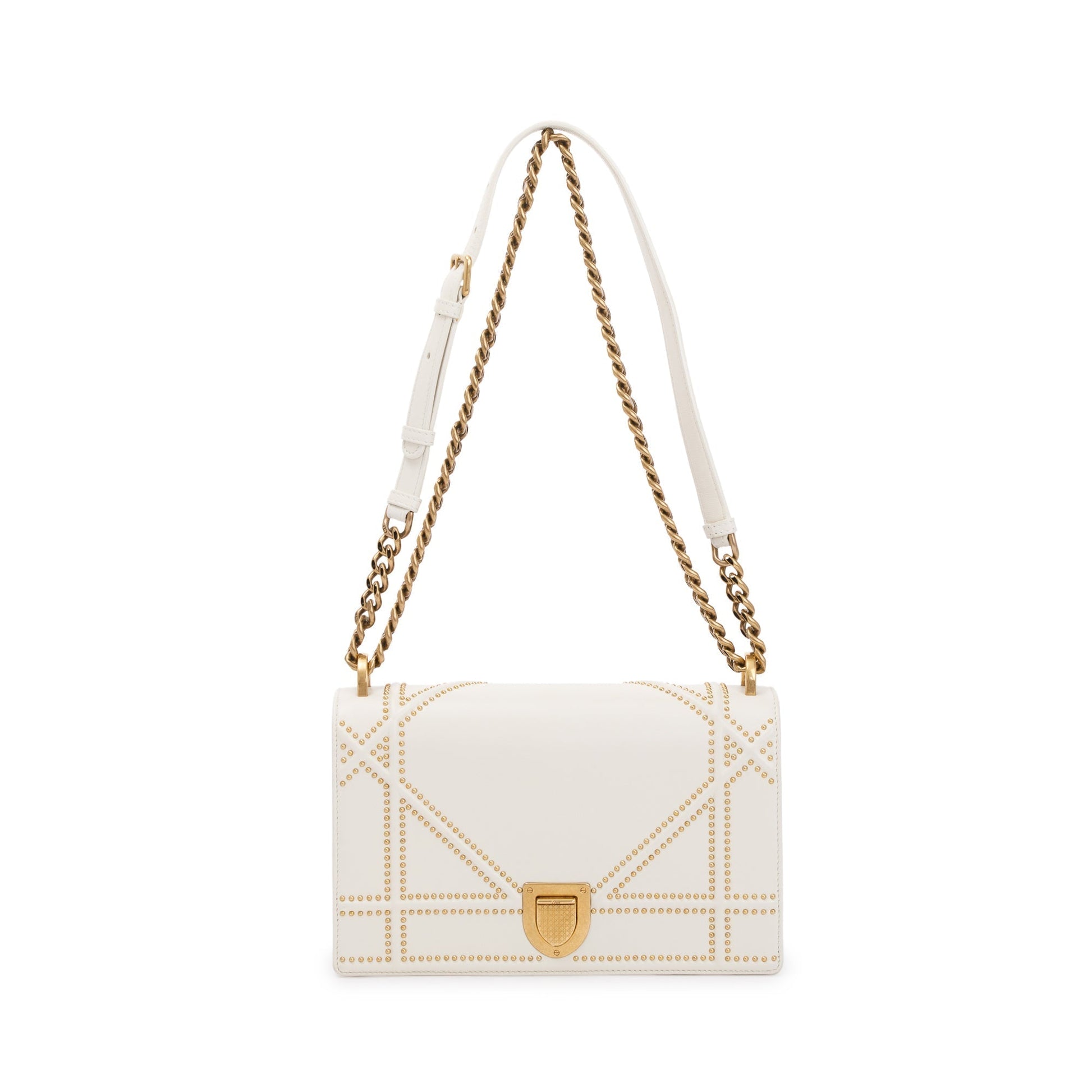 Christian Dior White Calfskin Leather Medium Studded Diorama Flap Bag