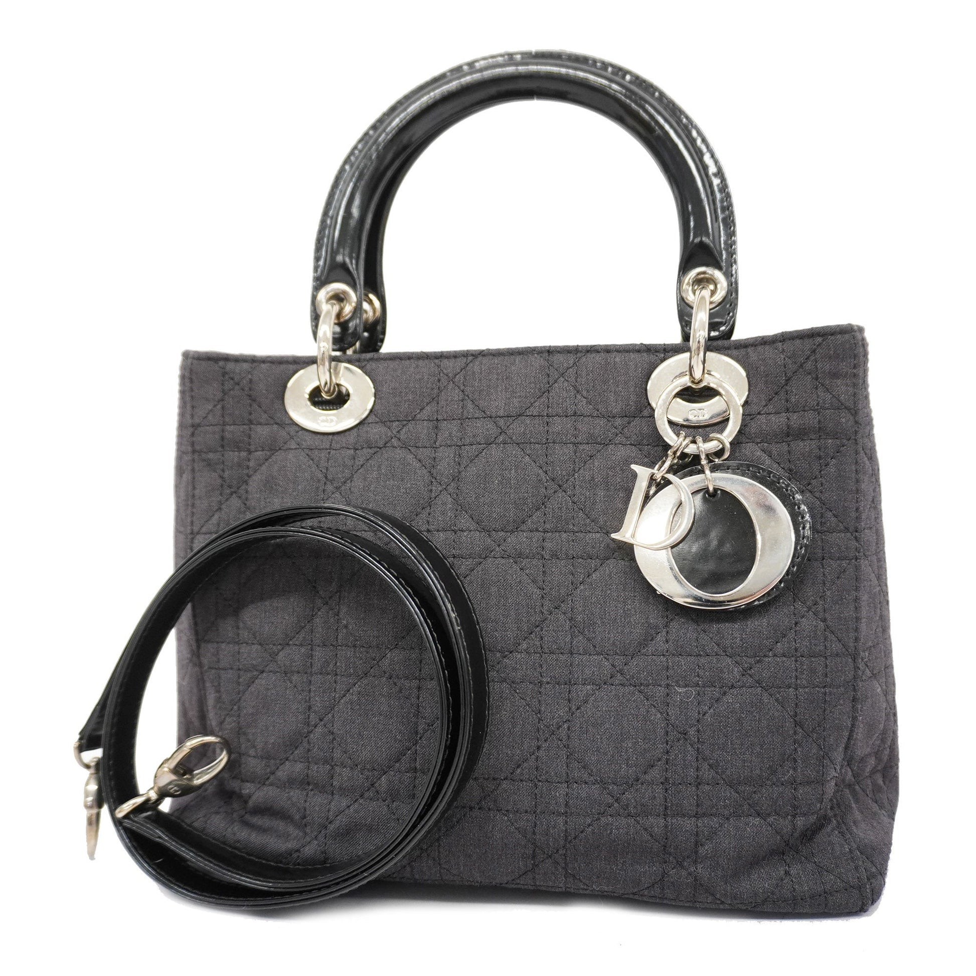 CHRISTIAN DIOR Lady Dior 2WAY Bag Cannage Denim Handbag,Shoulder Bag Black