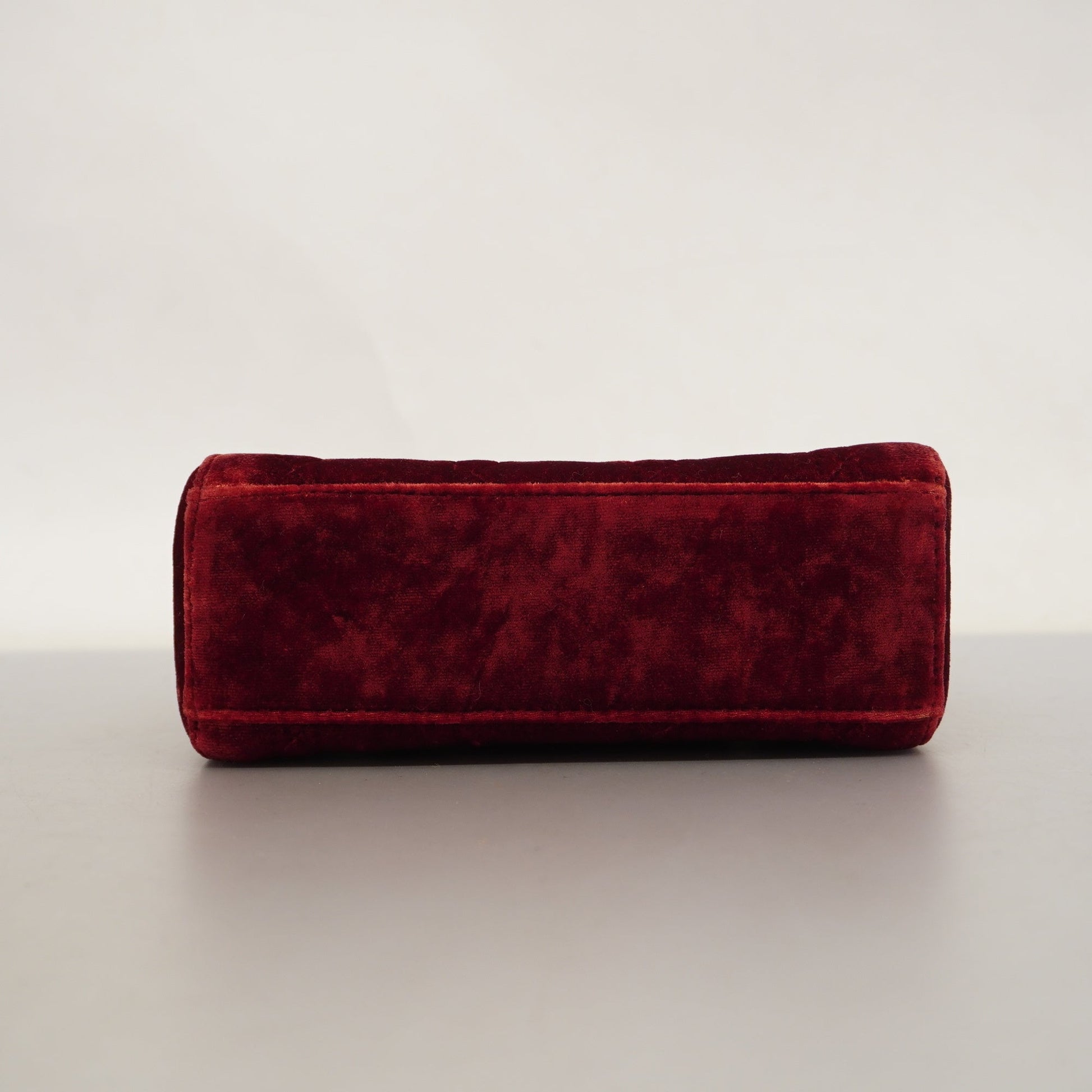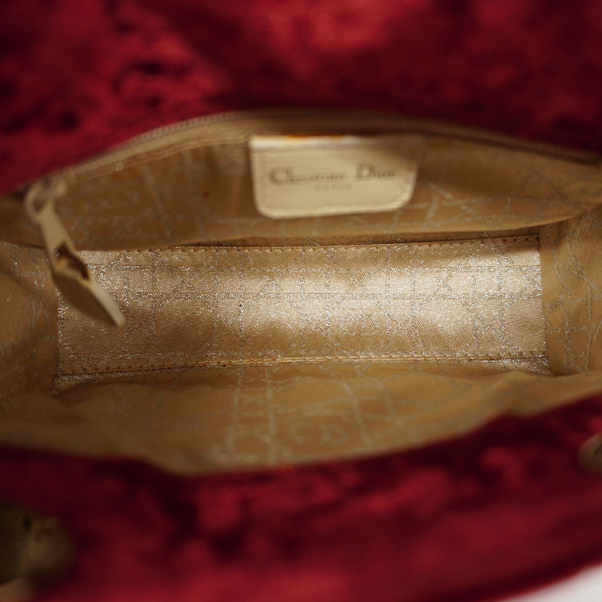 CHRISTIAN DIOR Lady Dior Cannage Velor Women's Handbag Red Color