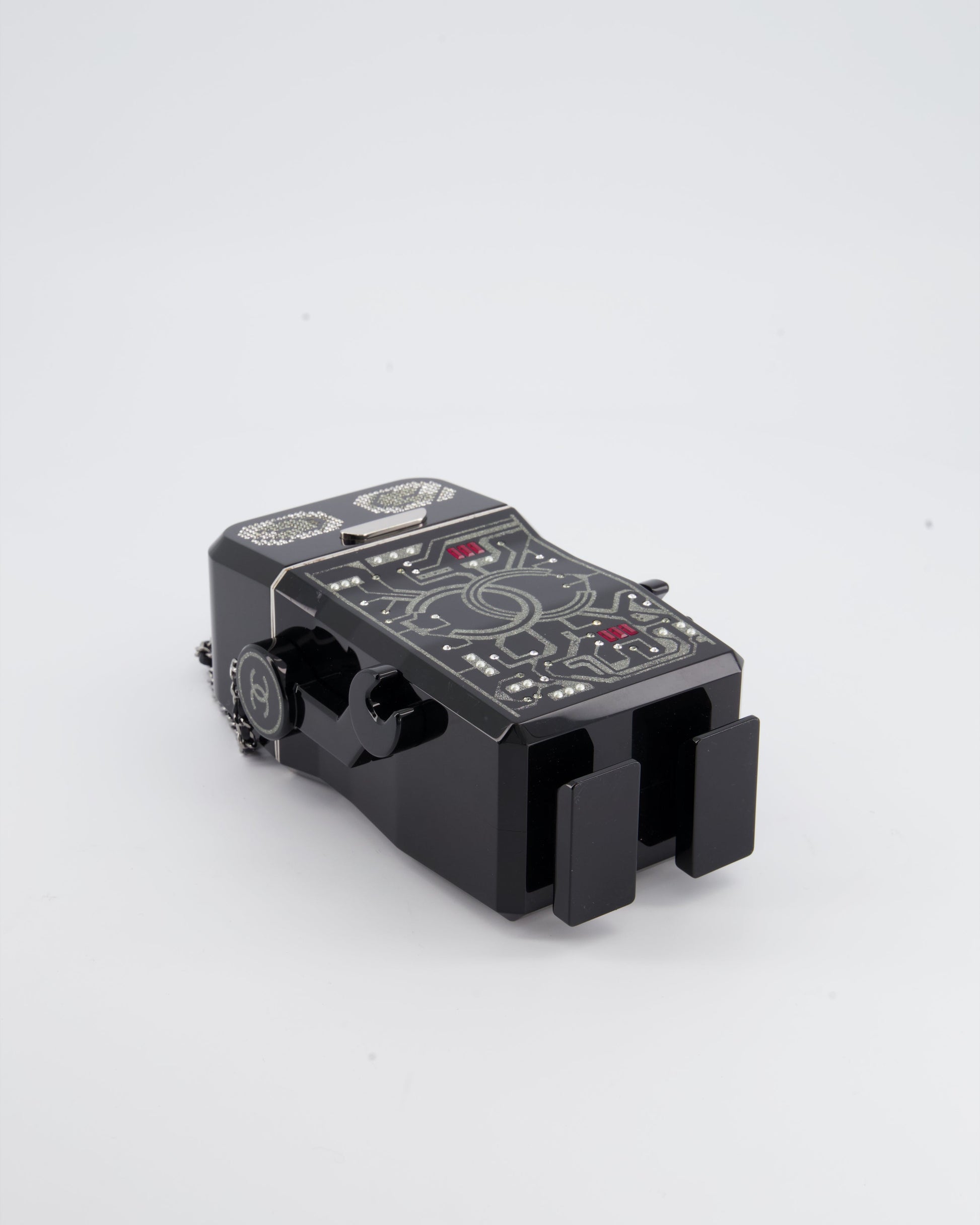 *COLLECTORS* Chanel Black Glittered Plexiglass Robot Minaudière Bag with Silver Hardware