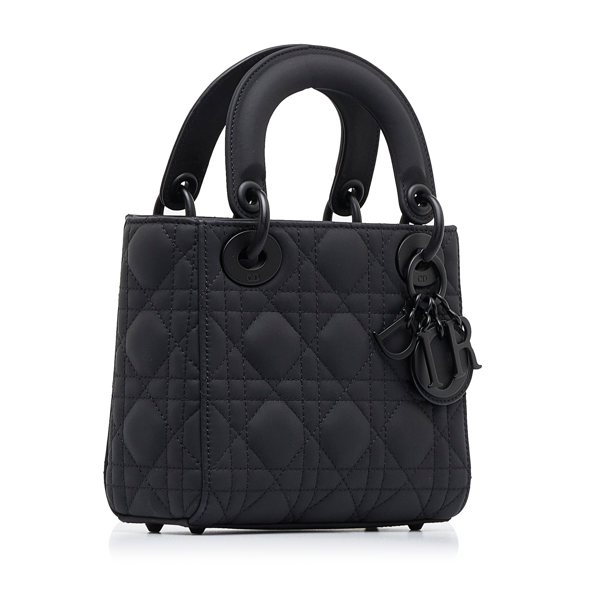 The Lady Dior handBag embodies the ho 's vision of elegance and beauty. Timeless and refined, it's crafted of black ultra-matte calfskin with cannage stitching for signature quilted texture. The tonal D.I.O.R.Tag in metal further embellish and illuminate the silhouette. With its detachable chain shoulder strap, little Lady Dior can be Bag can be in the hand, over the shoulder or crossbody, making it an ideal companion for the evening.