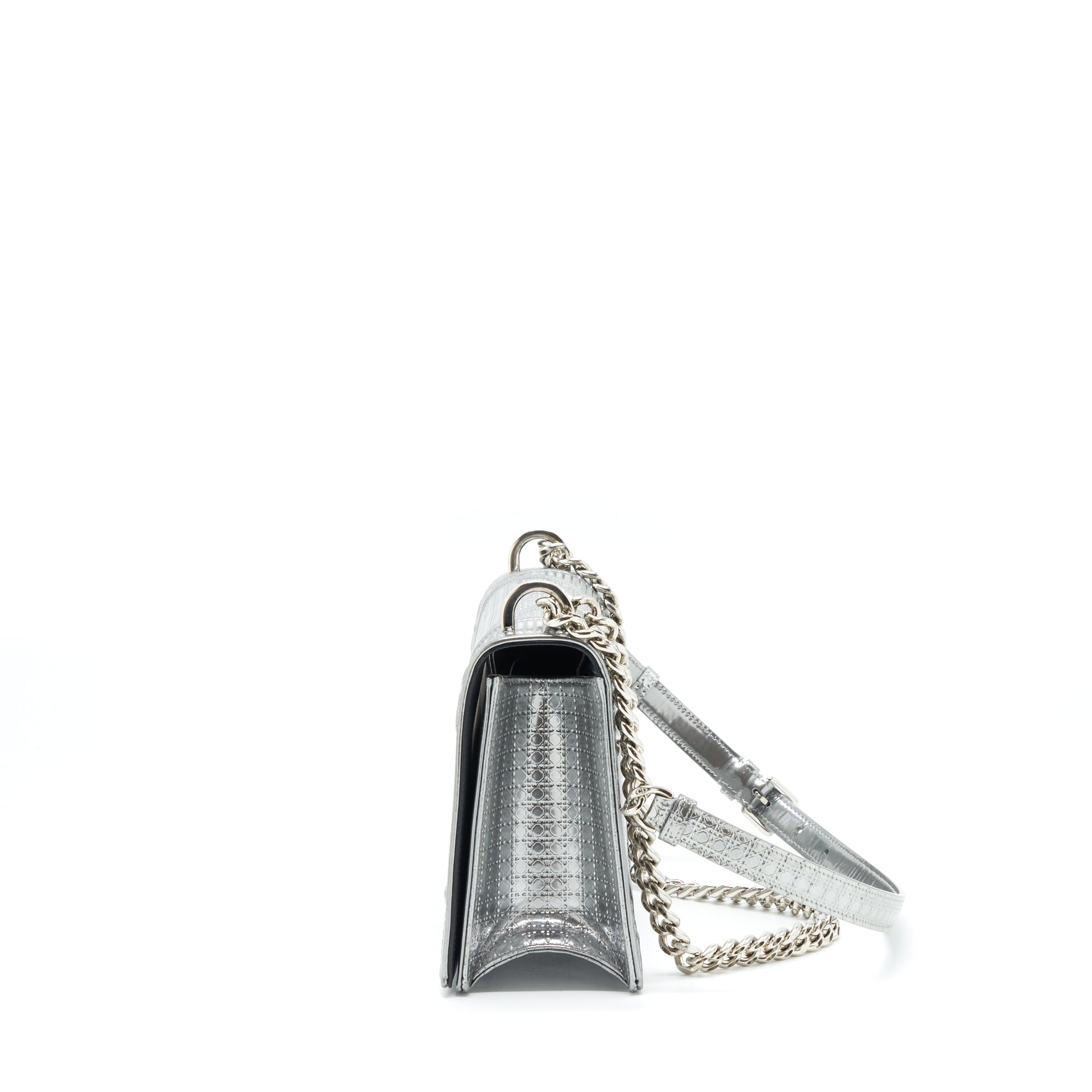 This Dior Medium Diorama Metallic Sliver features a compact silhouette and refined detailing, offering a balanced blend of modern edge and everyday versatility.