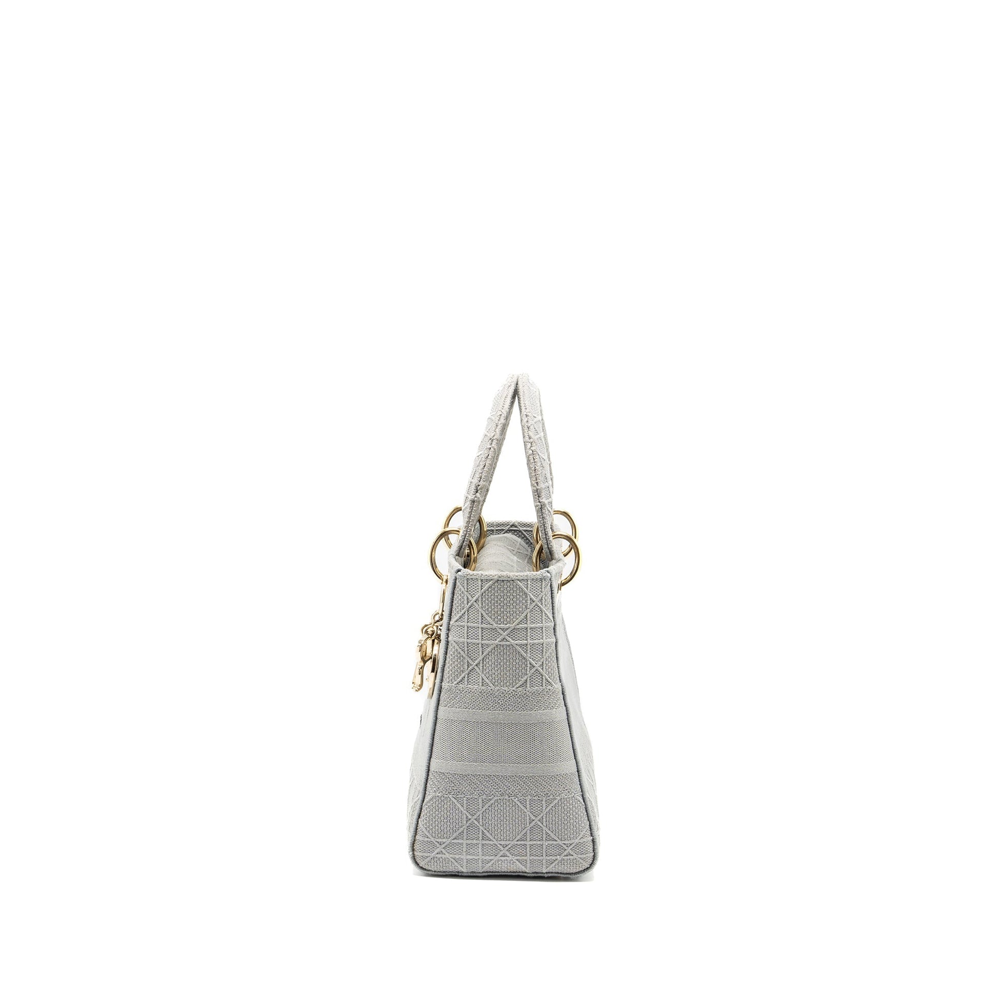 Dior Medium Lady D-Lite Purse Cannage Embroidery Grey
