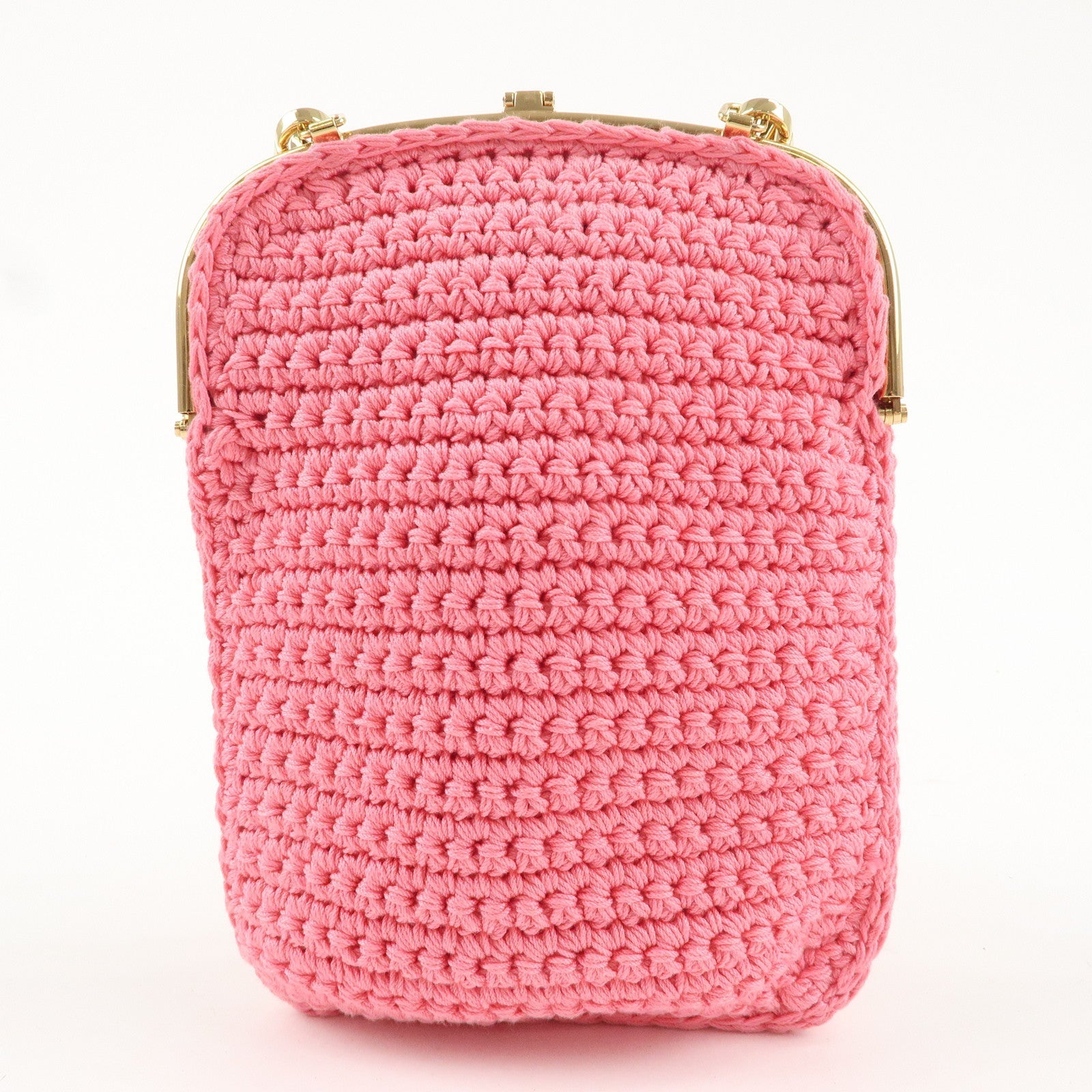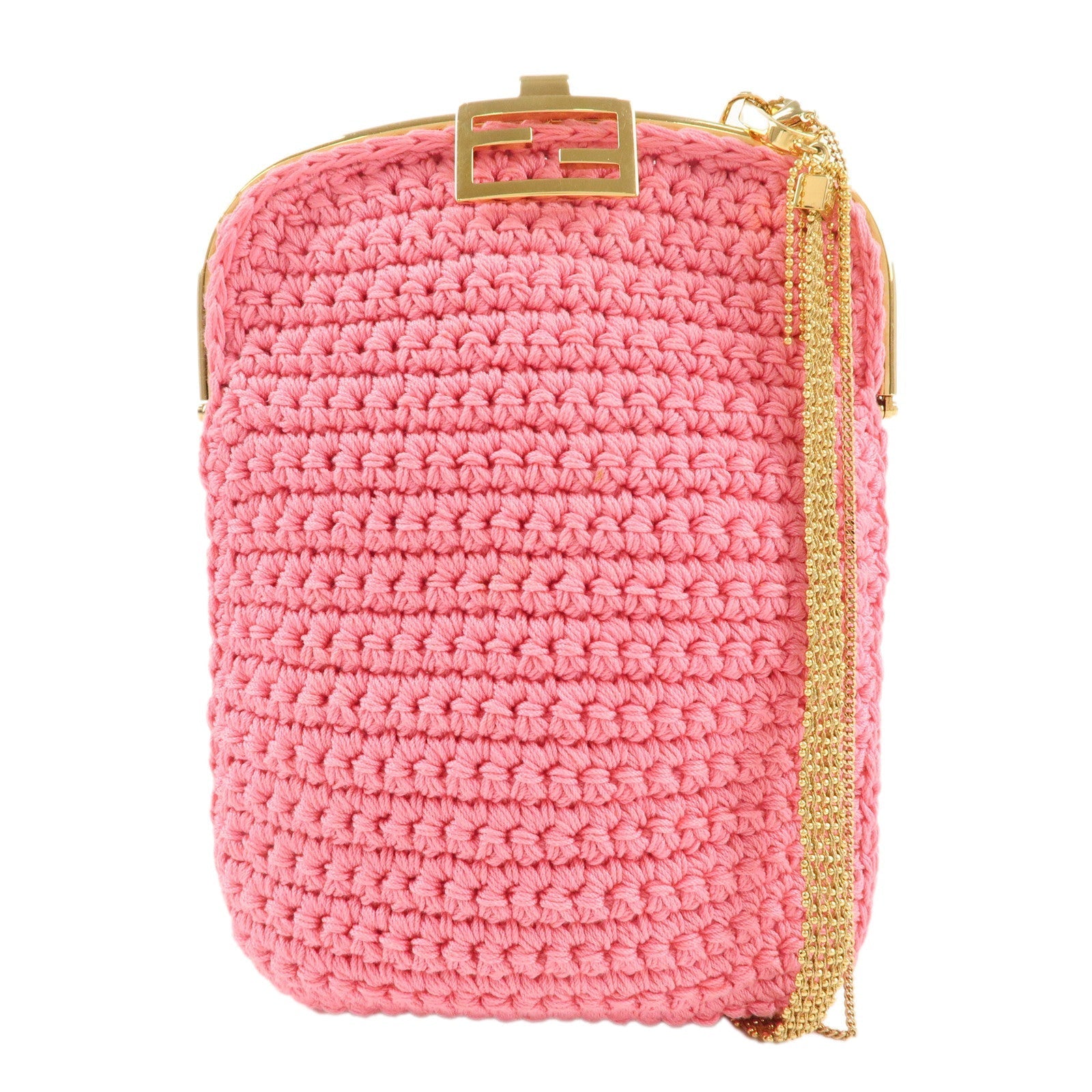 FENDI Baguette Knit Cell Phone Case Shoulder Bag Pink 7AR966
