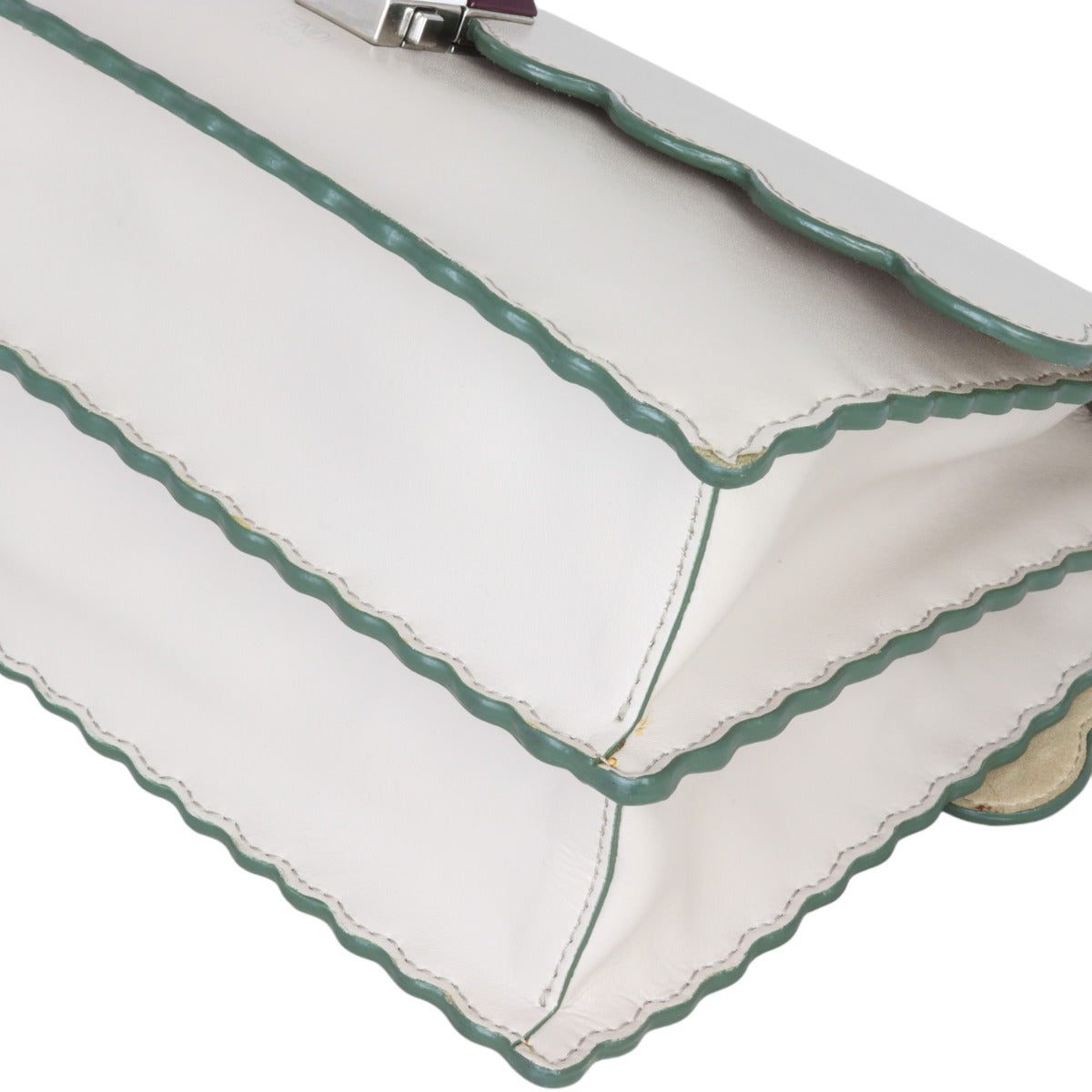 Iconic and ever playful, the Fendi Kan I Crossbody is the perfect accessory for the on-trend style hunter. The luxurious leather is complemented with two-tone stud details and a delicate scalloped edge, making this unique and feminine bag an absolute winner!