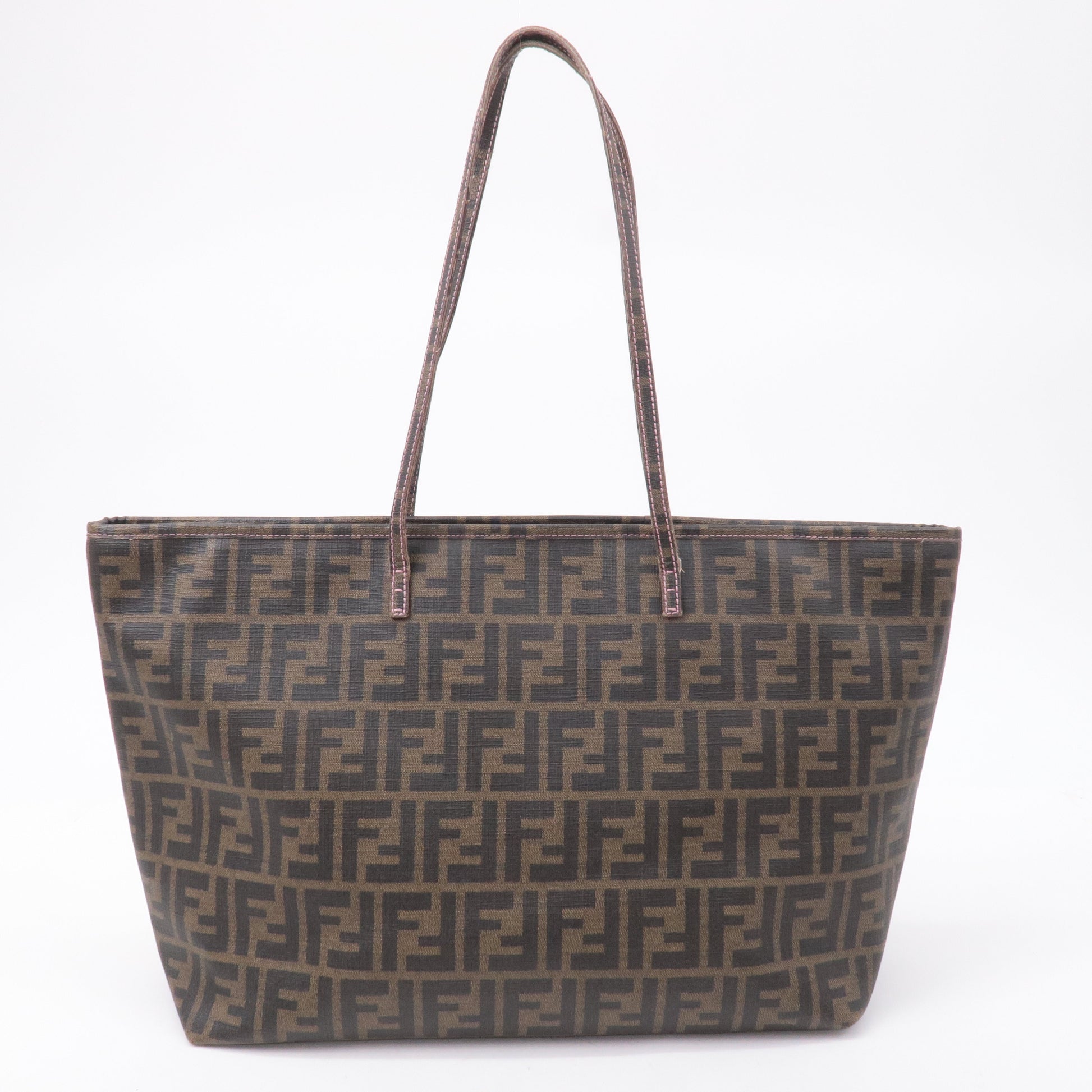 FENDI Zucca Logo Print PVC Leather Tote Bag Brown Black 8BH185