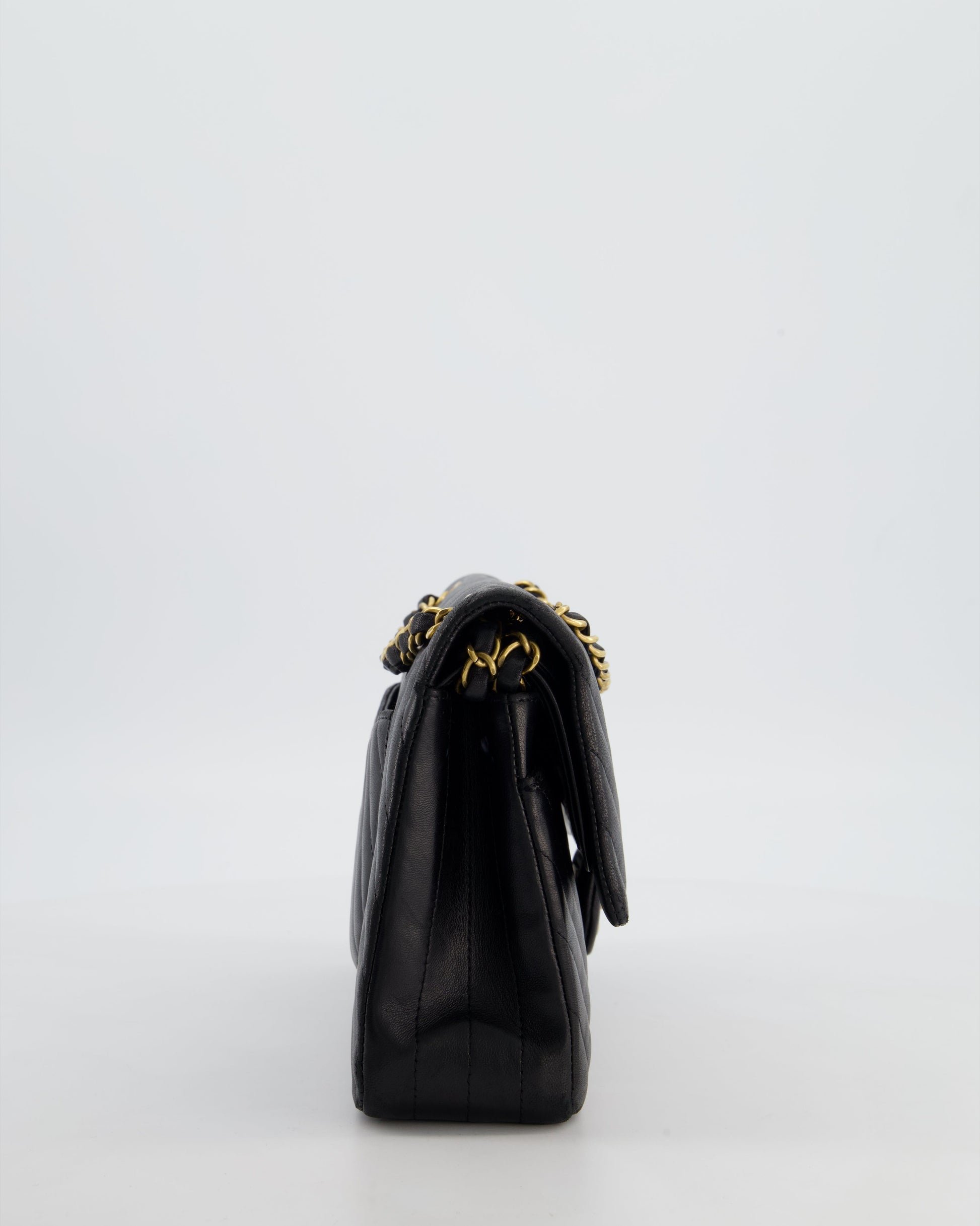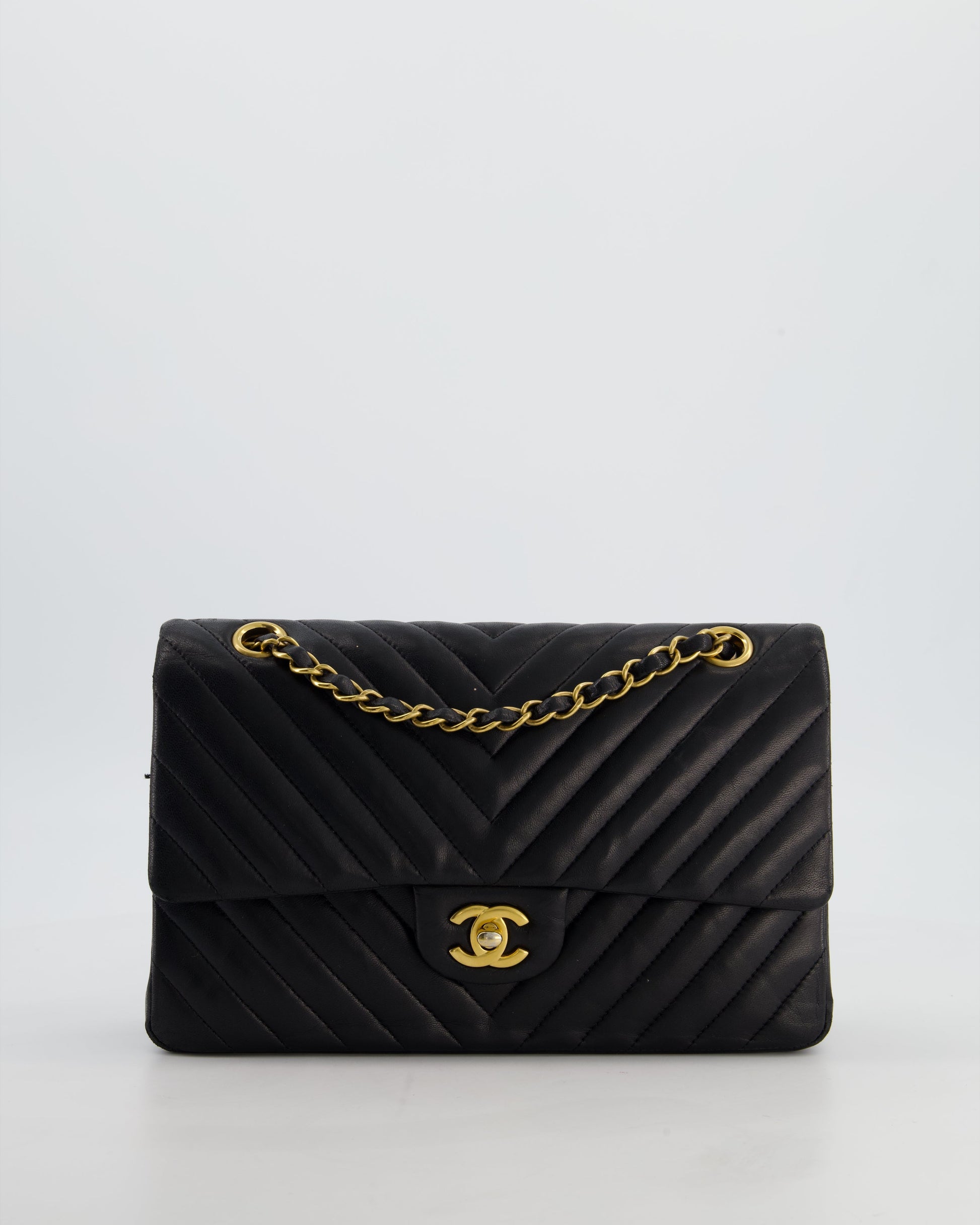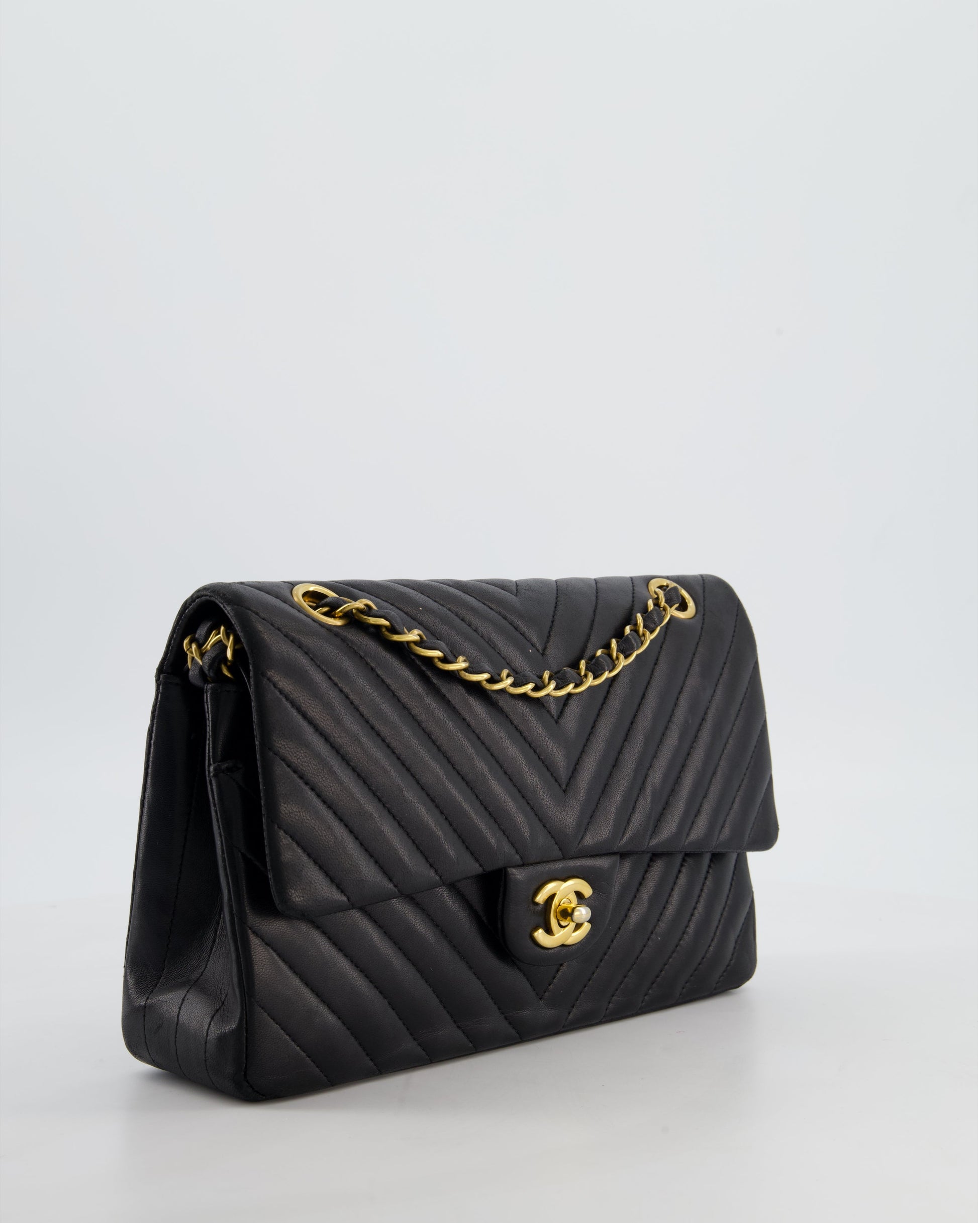 *FIRE PRICE* Chanel Black Chevron Medium Classic Double Flap Bag in Lambskin Leather with Gold Hardware