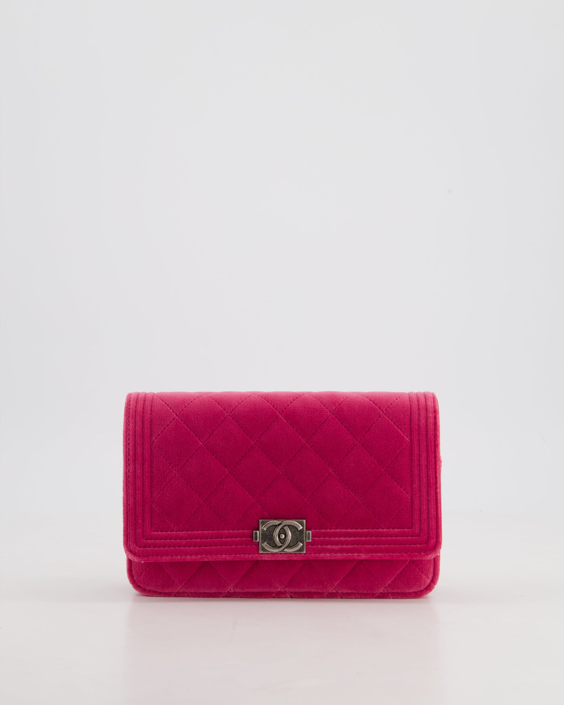 *FIRE PRICE* Chanel Pink Boy Wallet on Chain in Velvet with Silver Hardware