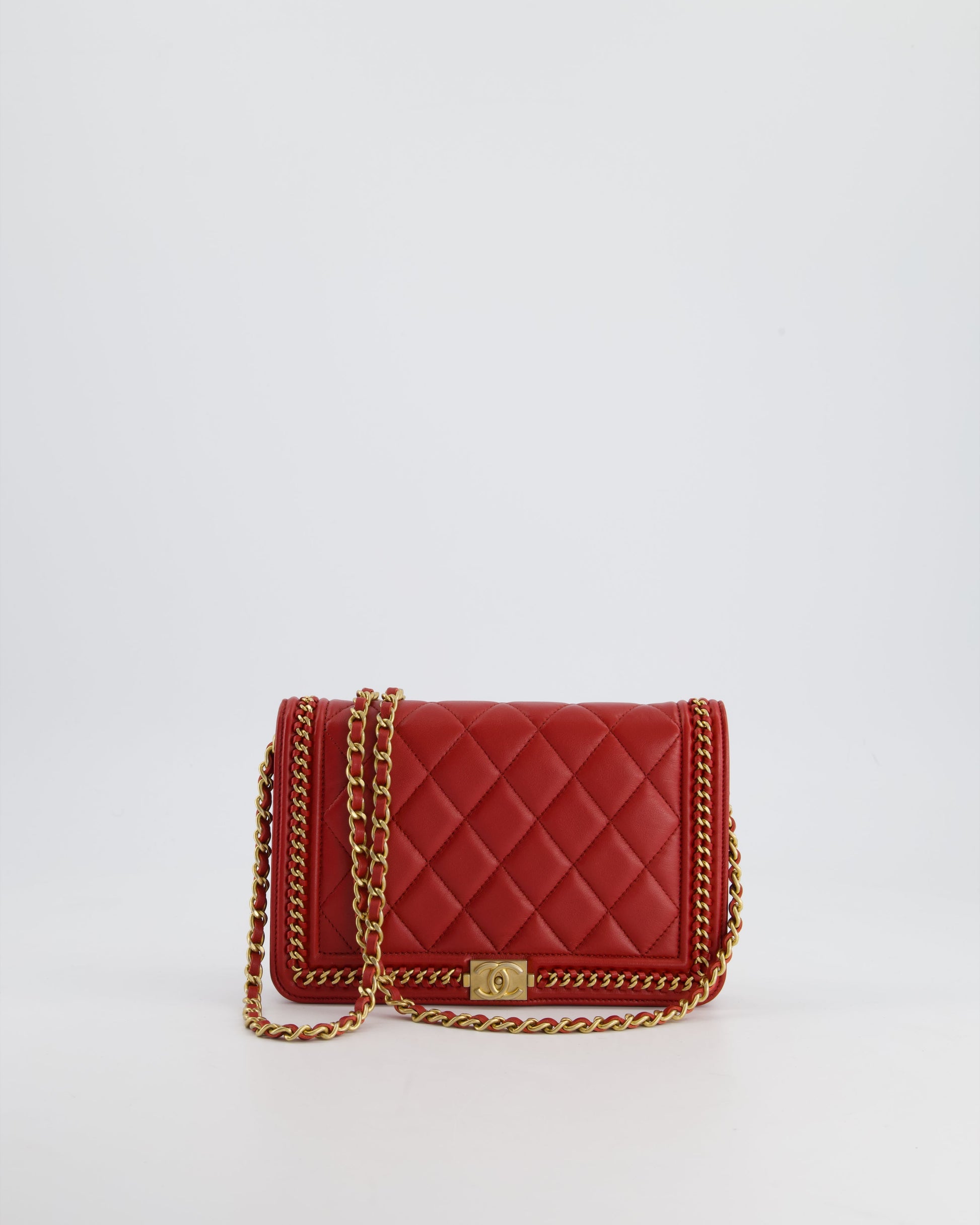 *FIRE PRICE* Chanel Red Boy Wallet on Chain in Quilted Lambskin Leather with Gold Hardware and Chain Detail