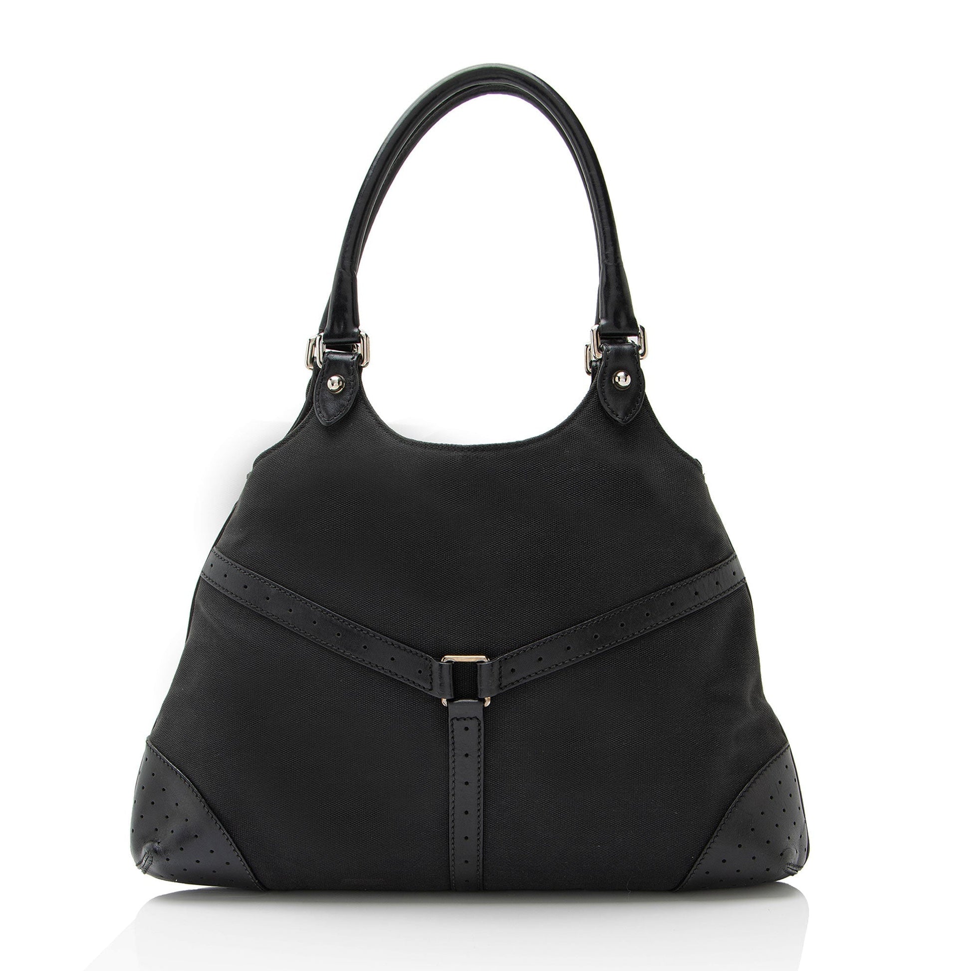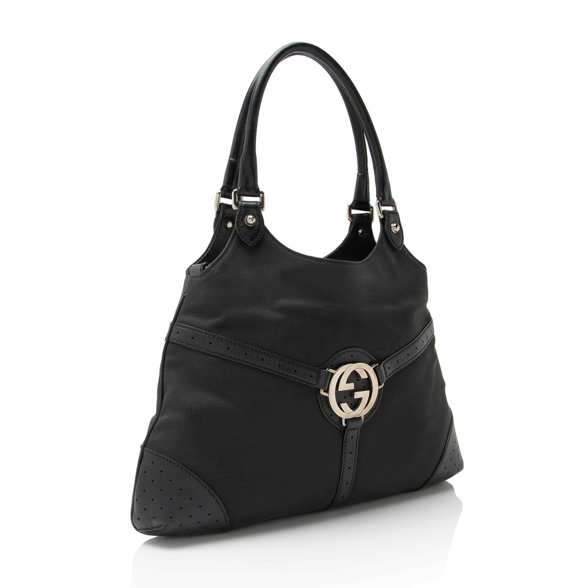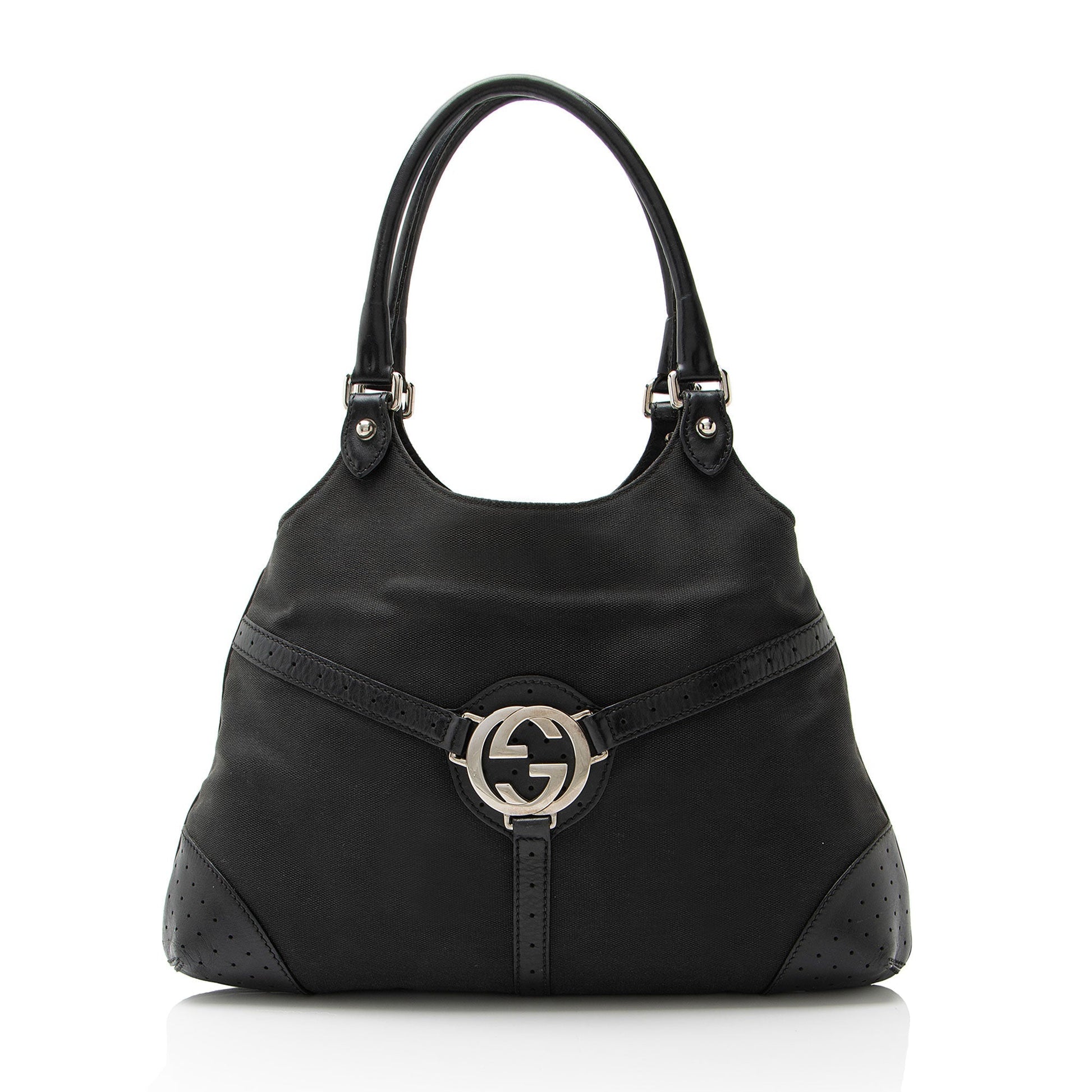 Gucci Canvas Perforated Leather Interlocking G Reins Satchel