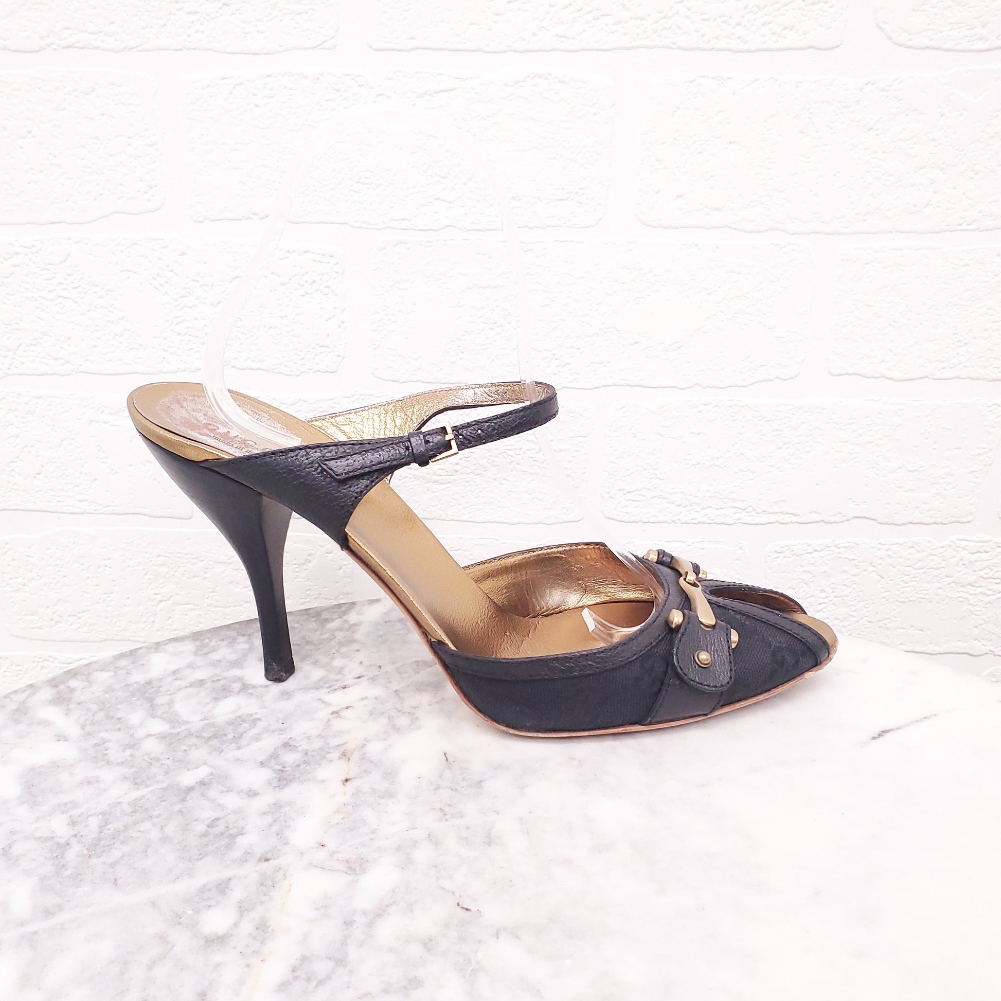GUCCI LOGO PEEP TOE WITH LOGO - SIZE 10.5(40.5)