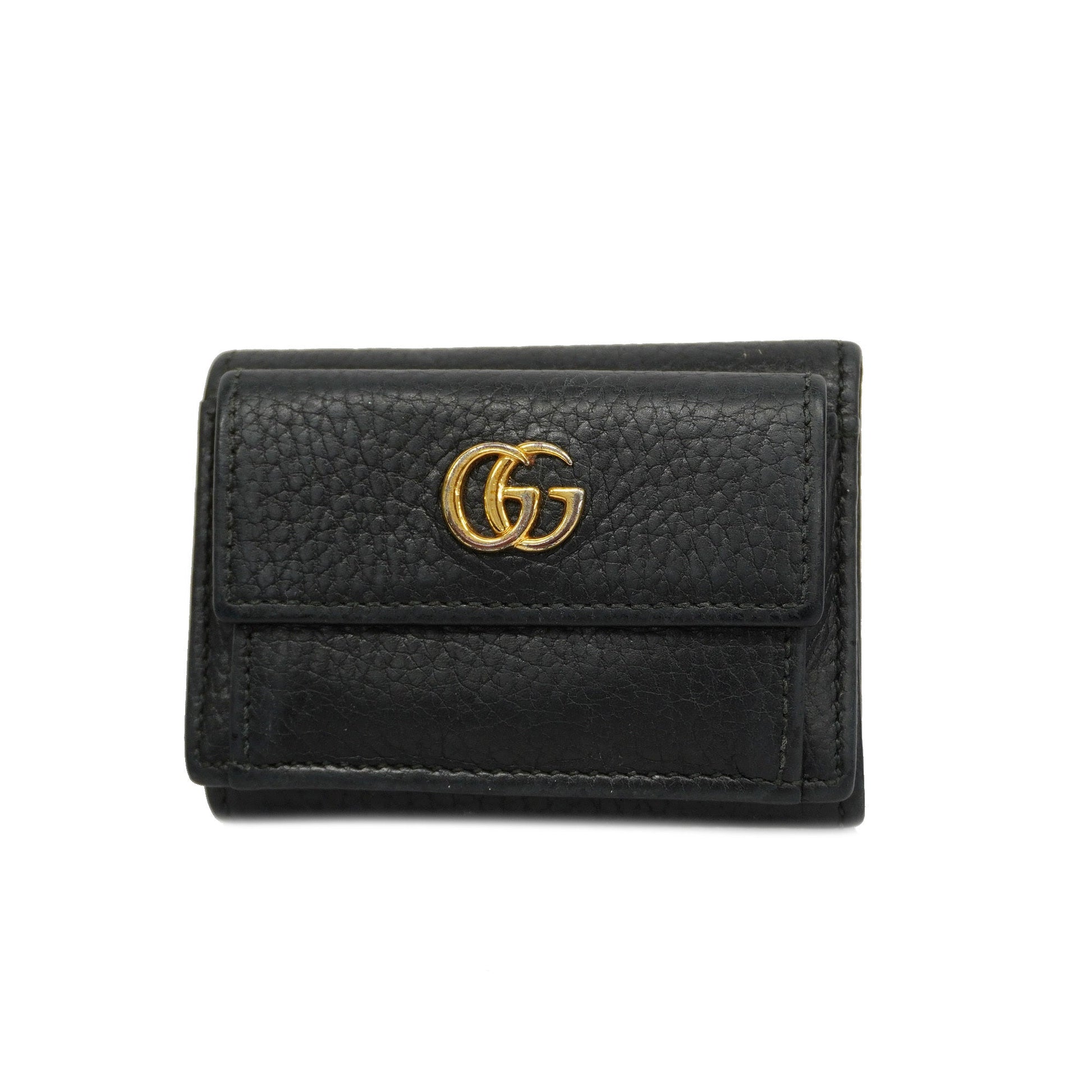 GUCCIAuth GG Marmont Gold Hardware 523277 Women's Leather Wallet [tri-fold]